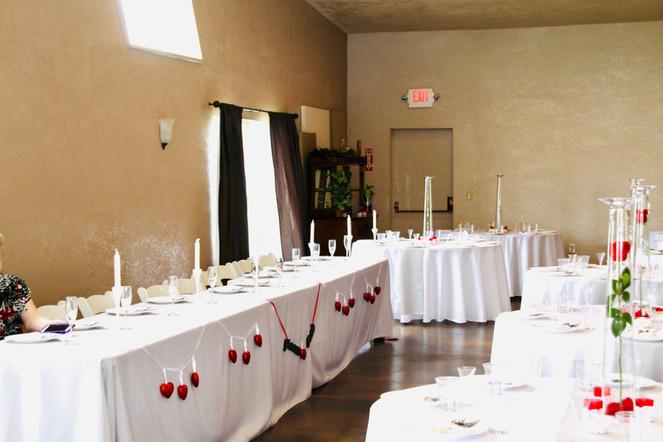 -Dimmers in the lights -20 round tables that seat 8 chairs, 4 six foot banquet tables, 4 eight foot banquet tables, 6 cocktail tables, and one 48 inch sweetheart table. -Moveable projector and screen