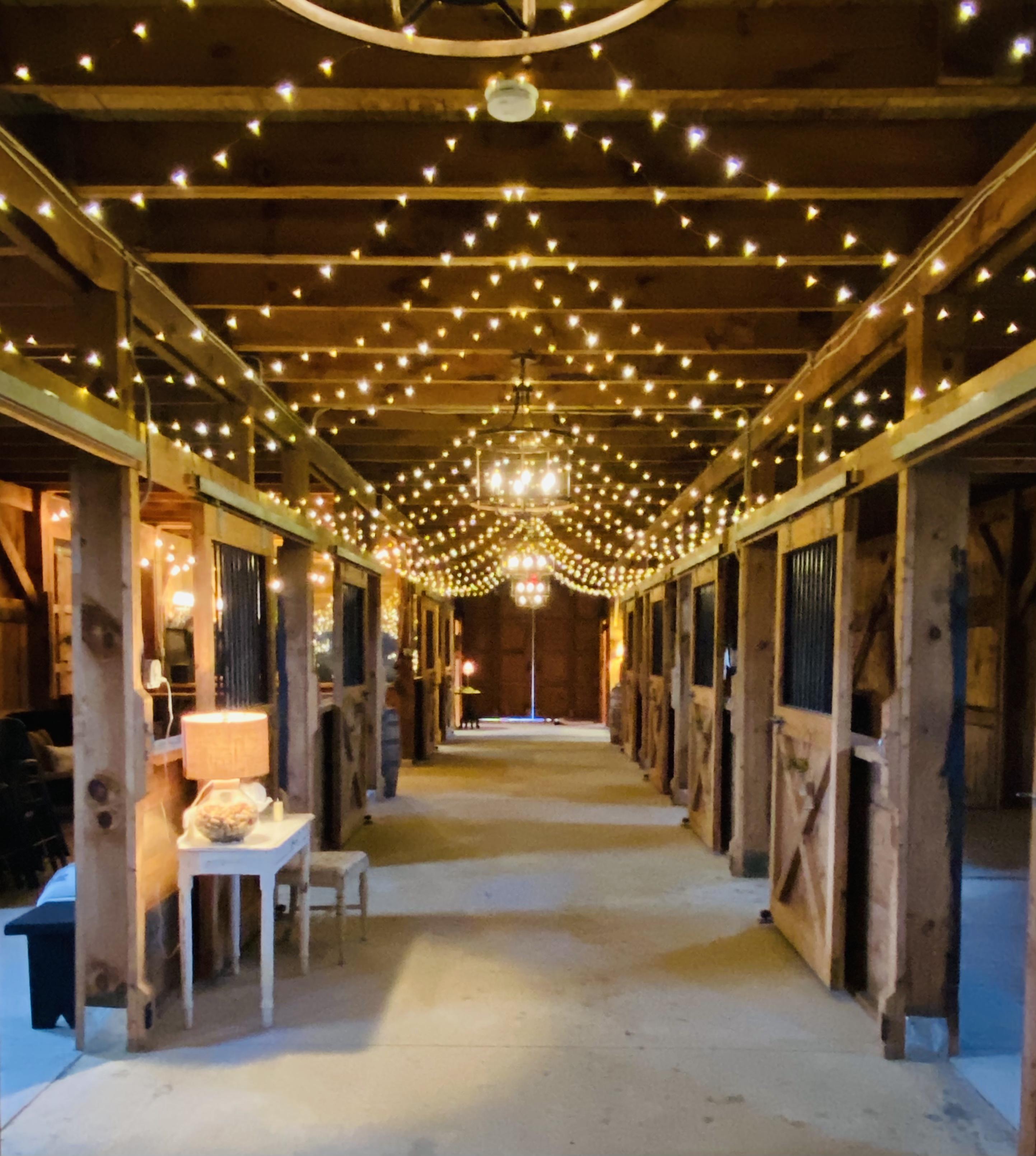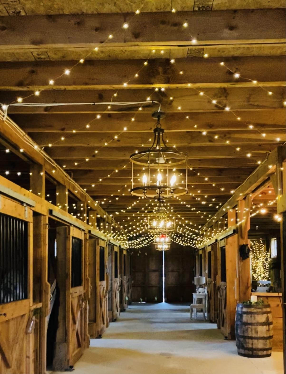 Mountain View Stables sits on 70 private acres in Loudon Our 30 x 80 barn has many floor plan options and can seat up to 80 guests, with additional seating benches throughout, tables and chairs included. 2 beautifully decorated bridal suites, bar, coffee station, fire pit with bistro lighting, fire wood included, pond, brook, maintained pasture to accommodate any size tent (not included) for larger events, yard games, tree swing, antique tractor and more. With our featured Mountain View ceremony site w/ 10 sixteen foot long benches and arbor included, just a few minutes up a scenic gravel road. This property has so much to offer. We are a DIY Venue giving you the freedom to make this space uniquely yours. We welcome outside fully insured vendors and happy to refer preferred vendors as well. The price includes three day exclusive access to the property for rehearsal, set up, and clean up post event day. Also included, Day of on-site event coordinator, and parking attendants.