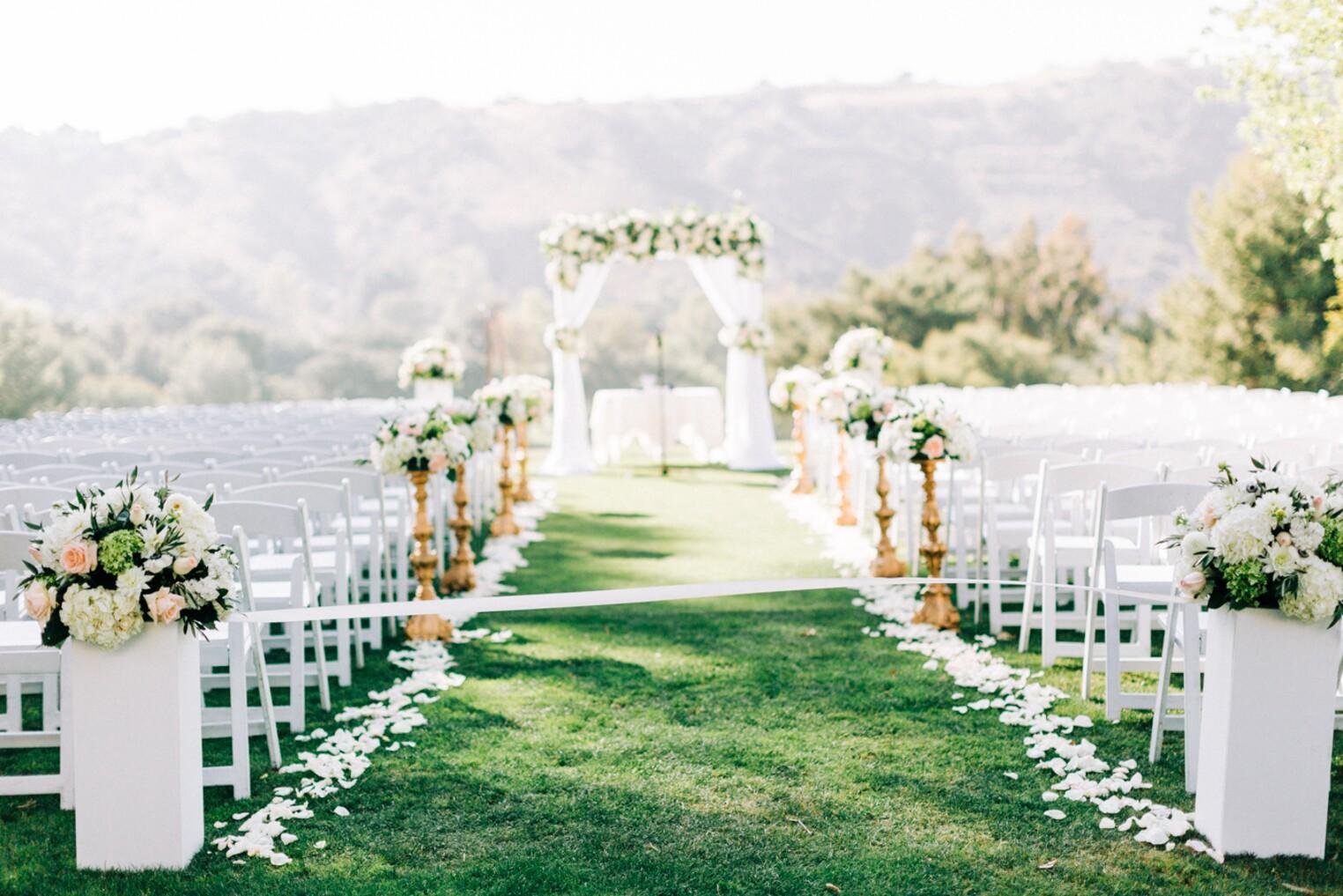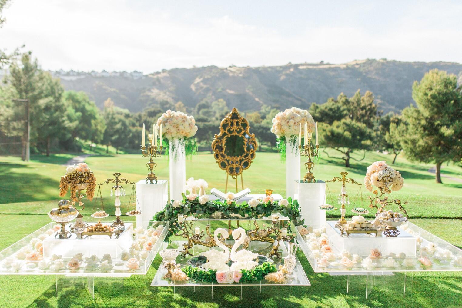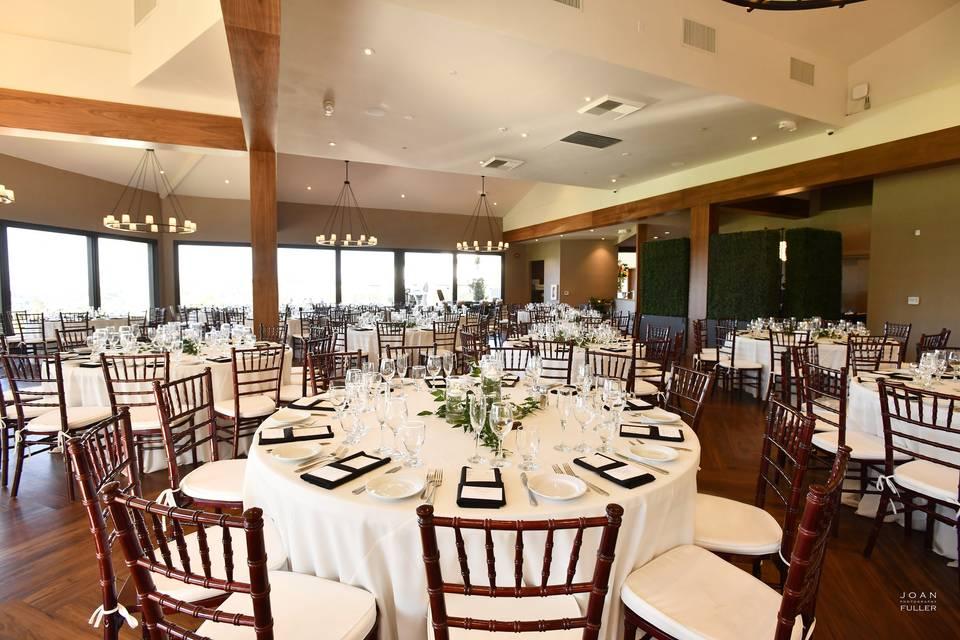 The club’s magnificent main entrance leads to a luxuriously appointed dining room highlighted by a dramatic glass atrium. Seating up to 200, the space features floor-to-ceiling windows that wrap around three sides of the room, offering breathtaking views of the emerald fairways and the impressive Santa Monica Mountains in the distance. Elegant earthy tones of the room give the Main Dining Room a charming, upscale ambiance that is easily customizable and works with a variety of color palettes. Host your reception set under strings of romantic lights and stars in the magical outdoor Garden Terrace, which can seat up to 400 guests.