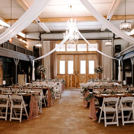 - Reception Site- Accommodate 225 guest comfortably; additional fees will apply if more than 225 guests. -15 beautiful farmhouse tables (7ft),10 round tables (60”), 4 high-top tables and chairs. Four different linen colors for round tables (white, navy, cranberry or grey) - Long tables for the buffet serving - Event coordinator (for reception time only). Will include up to two 1-hour meetings/emails to discuss details of reception (i.e. special dances, cake cutting, send-off) - Rustic outdoor fireplace with firewood provided -Fully functioning prep-kitchen for catering usage -Private changing room for bride & groom; if needed -Set-up and cleaning fee included