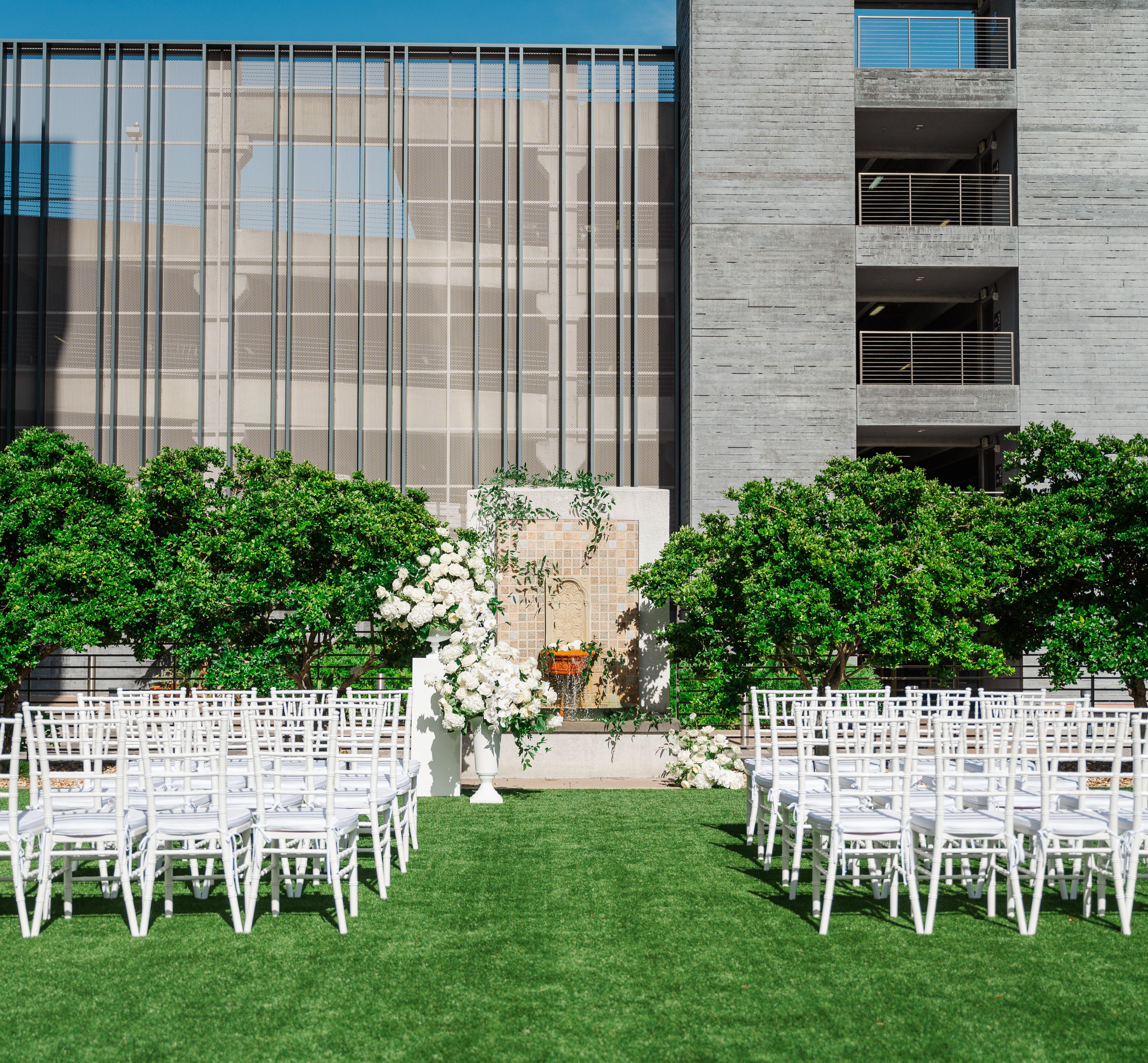 The picturesque backdrops and natural beauty of the space creates stunning photo opportunities and sets a tranquil mood for your guests. Ideal for both intimate gatherings and larger celebrations, the garden’s open layout and two fountains allows for versatile setups, while its enchanting ambiance ensures a memorable experience. Couples seeking an idyllic, nature-inspired setting will find the Fountain Garden to be an unforgettable choice for their special day.