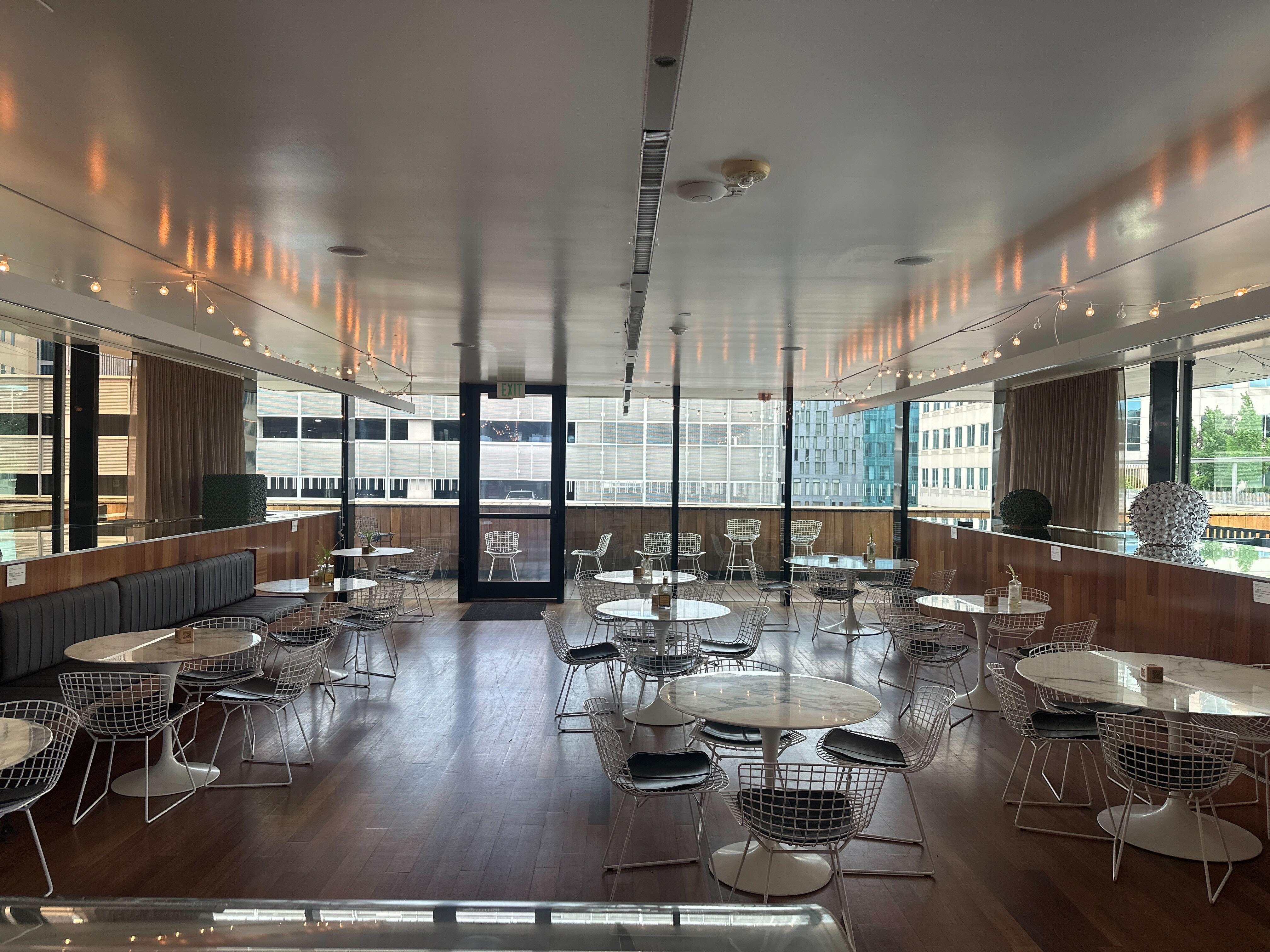 Cafe: At 1,100 sq. ft., the Café’s warm, Brazilian Cherry wood interior provides a nearly 360-degree view of Denver's downtown skyline. Rooftop: The wraparound rooftop deck hosts a south facing outdoor bar (weather permitting) along with Knoll tables and Bertoia chairs for additional outdoor seating. Galleries: MCA Denver's current exhibitions are available for viewing to you and your guests during your rental.