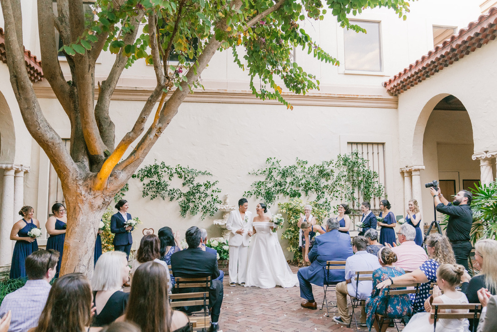The Membership Garden is a Spanish-style garden adorned with rich foliage, surrounded by columns and arched loggias with vaulted ceilings. Ceremonies can be held in the museum's courtyard, featuring a stunning fountain and lush greenery. The courtyard can accommodate your guests for a beautiful outdoor ceremony.