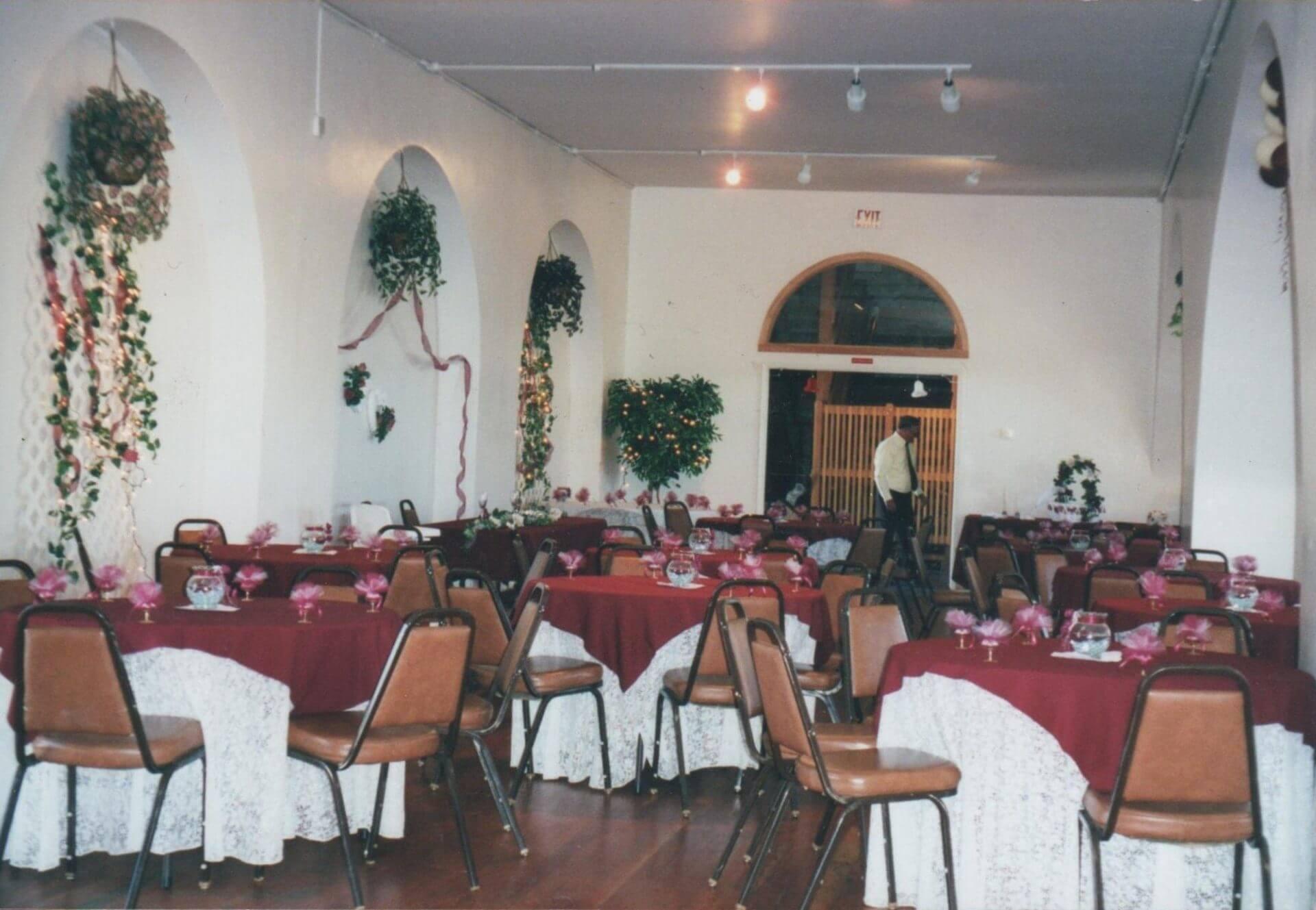 This venue option features a beautiful outdoor garden with white roses and a large pergola covered in mature vines. The garden is large enough to provide multiple seating options for guests. The Stone Hall is a large open and versatile space with large windows that display our beautiful garden. With a good sized catering kitchen and lots of space for dancing, the options with this venue are nearly endless!