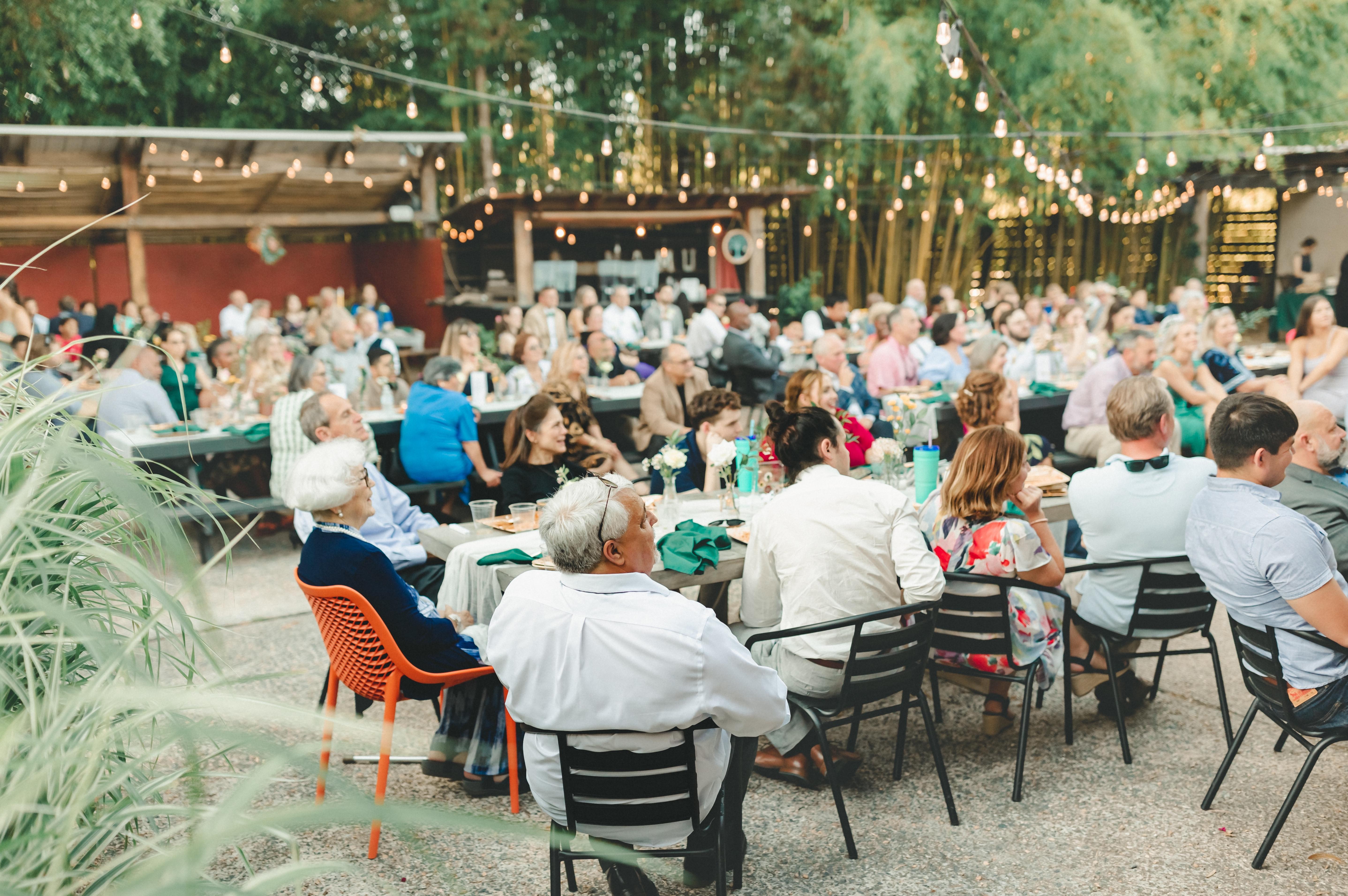 Our garden is the most popular of our spaces and the largest. It can also be divided for smaller events in quarter and half sizes! Dine and dance amongst the bamboo and beneath the twinkle lights!