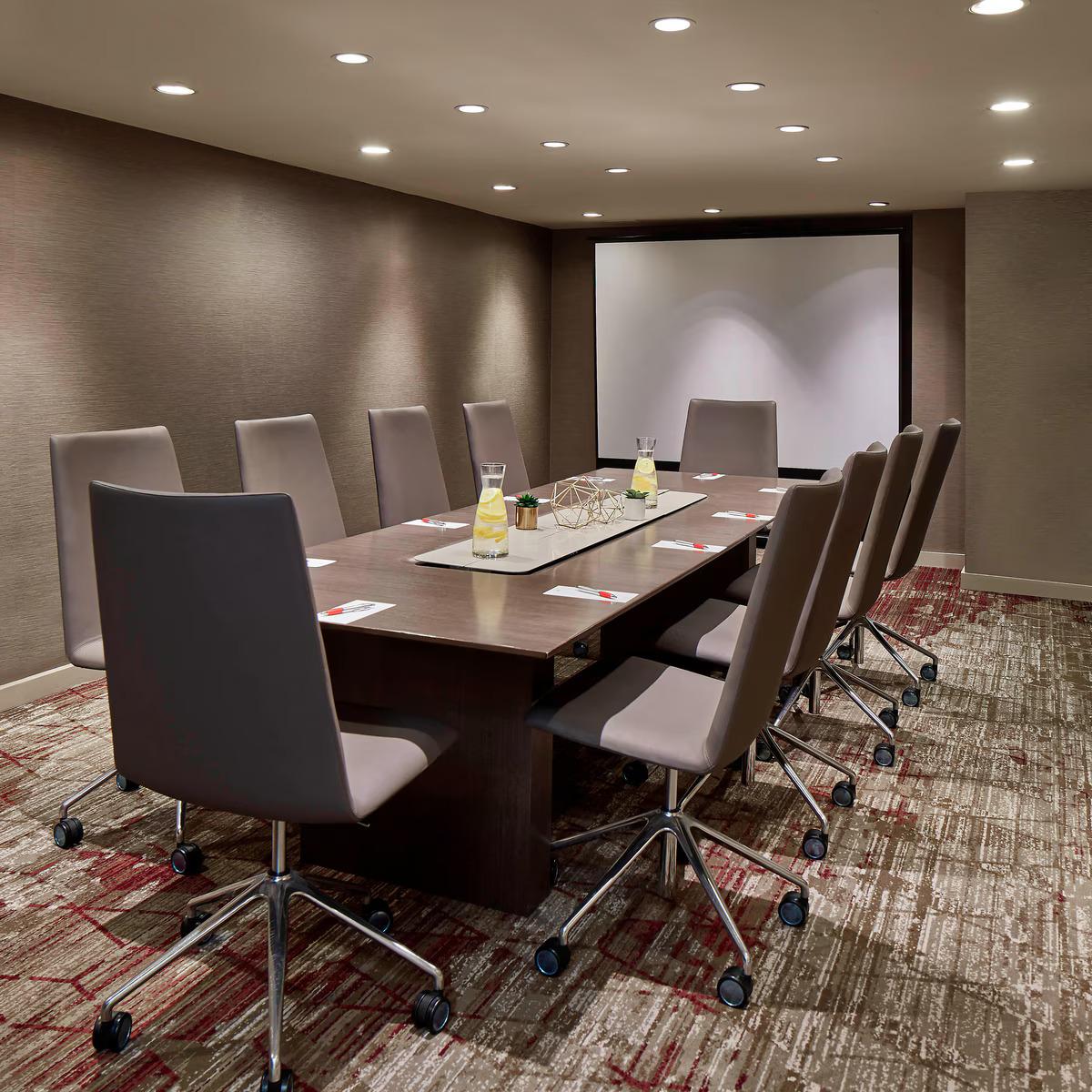 The sophisticated, 468-square-foot Boardroom provides an intimate space for private gatherings of up to 12 guests. This room is perfect for a small, private family dinner, a bridal party luncheon, or a quiet office space during your wedding weekend.