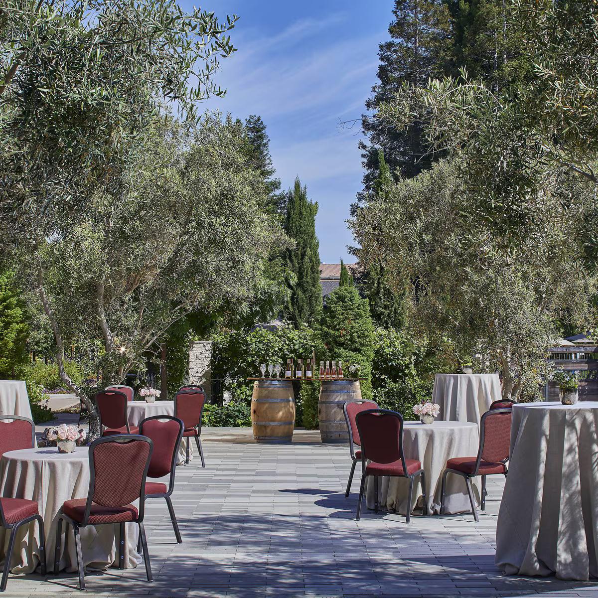 Surrounded by a lush olive tree garden and adjacent to our resort-style pool, the Pool Patio can be accessed directly from the Napa Valley and Grand Ballrooms. At 2,100-square-feet, this outdoor patio can accommodate up to 350 guests.