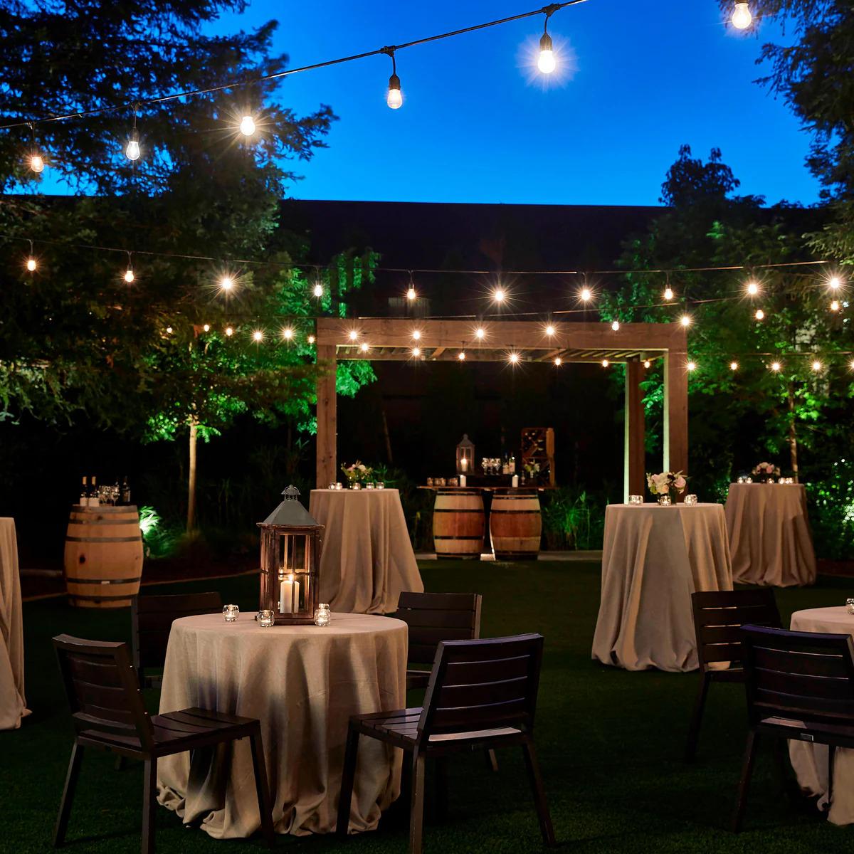 Adjacent to our resort-style pool and surrounded by 70-foot Redwood trees strung with glittering lights, our 7,040-square-foot Redwood Grove can accommodate up to 200 guests for an unforgettable awards reception, gala, or corporate gathering.