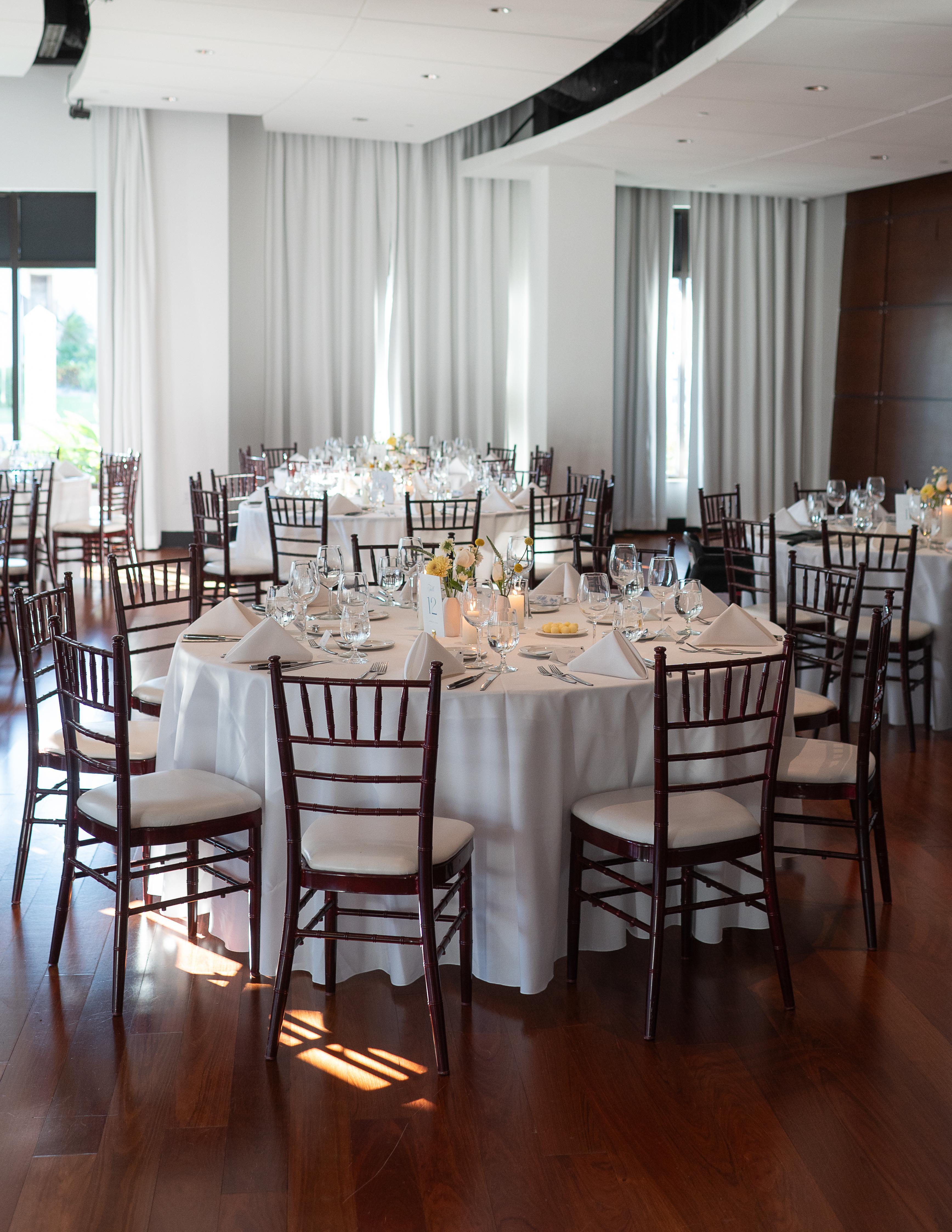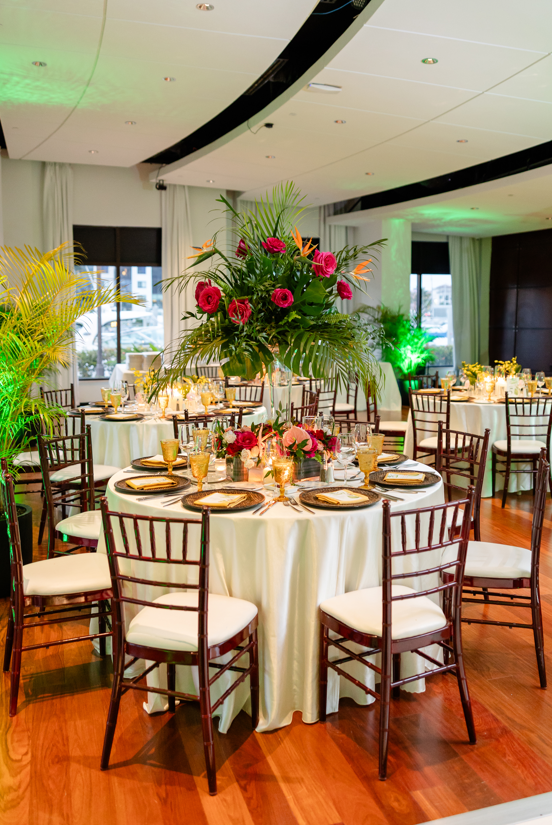 The Pointe is an elegant, 2,500-square-foot venue space with doors opening onto a sun-kissed waterfront patio, providing an idyllic backdrop for ceremonies, cocktail hours, receptions, and more.