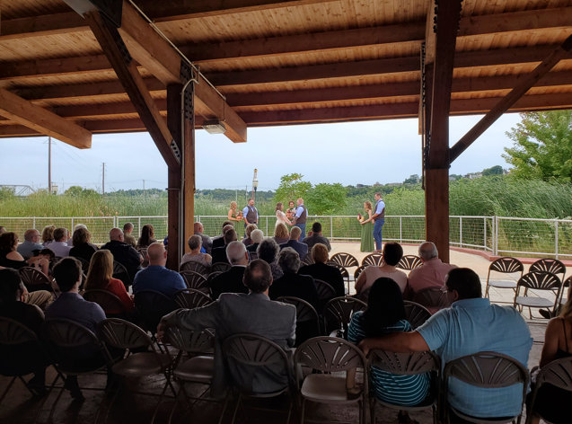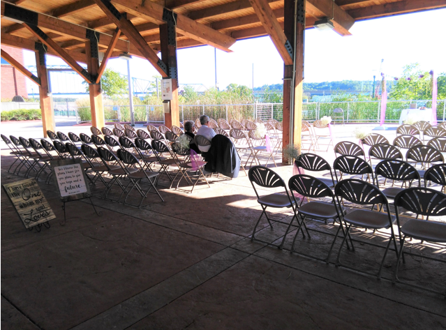 Harbor side open-air Plaza Pavilion, ideal for larger outdoor ceremonies; open-air Boatyard with waterfront views, ideal for outdoor ceremonies and tented events; and private Patio outside Train Depot overlooking pond, ideal for smaller outdoor ceremonies. Plaza and Boatyard - Accommodates up to 200 guests each/ Patio - Accommodates up to 125 guests
