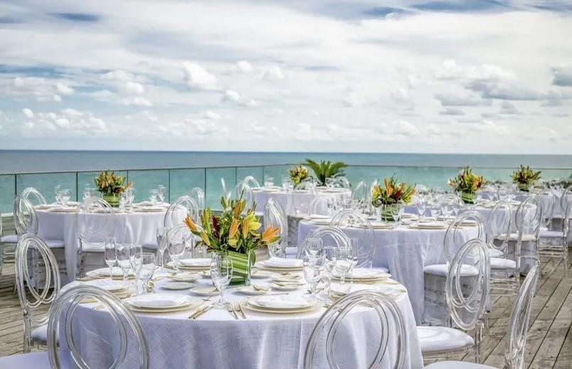 Ideal for upscale cocktail soirées, the 1,660-square-foot Ocean Terrace provides a check retreat graced with breathtaking ocean vistas and enchanting panoramas of Miami Beach's charming skyline. It invites you to feel both part of the vibrant scene and elevated above it all.