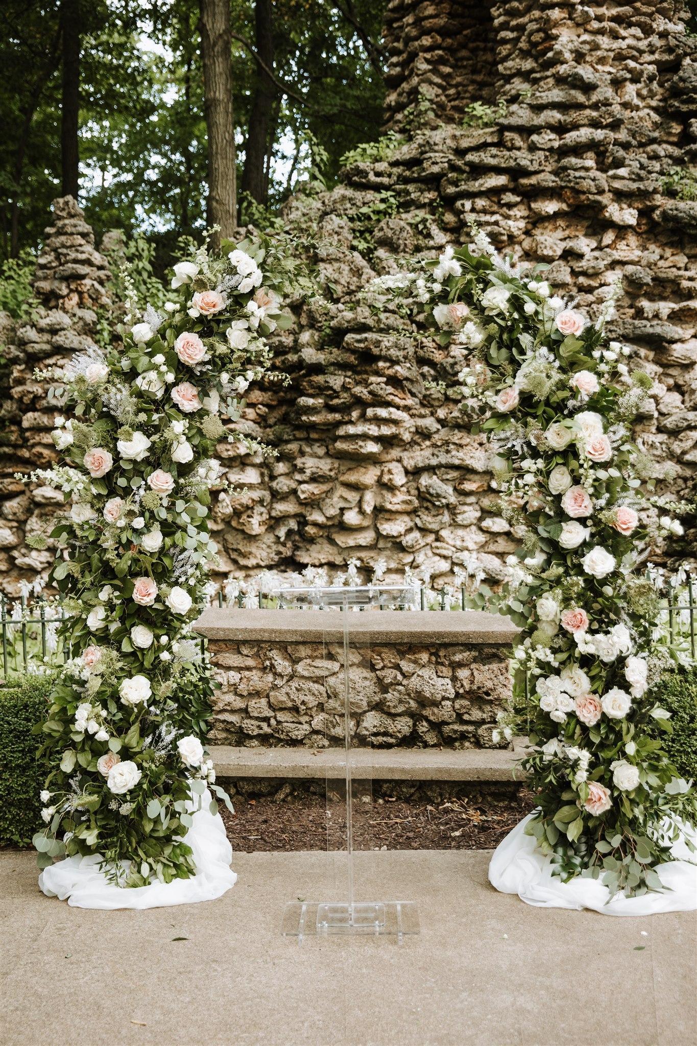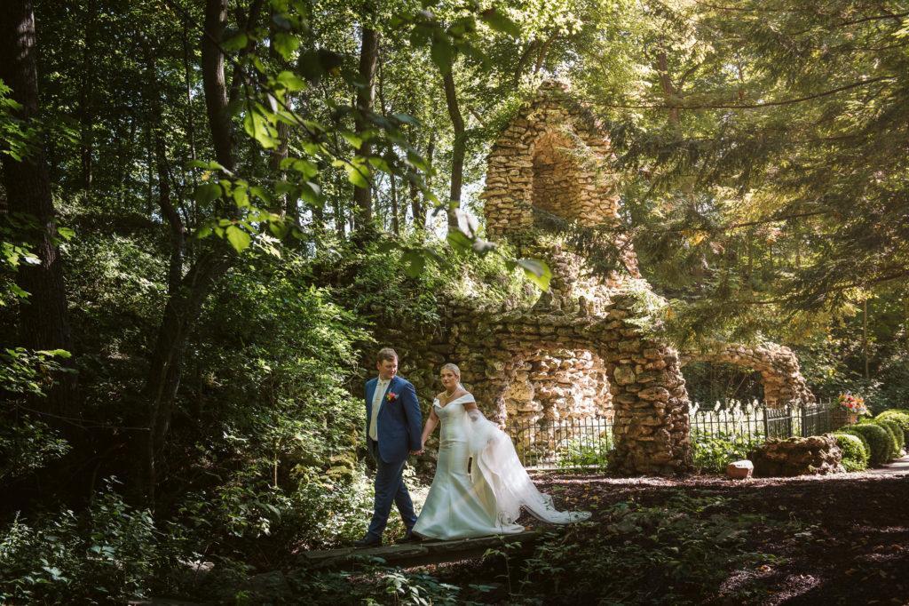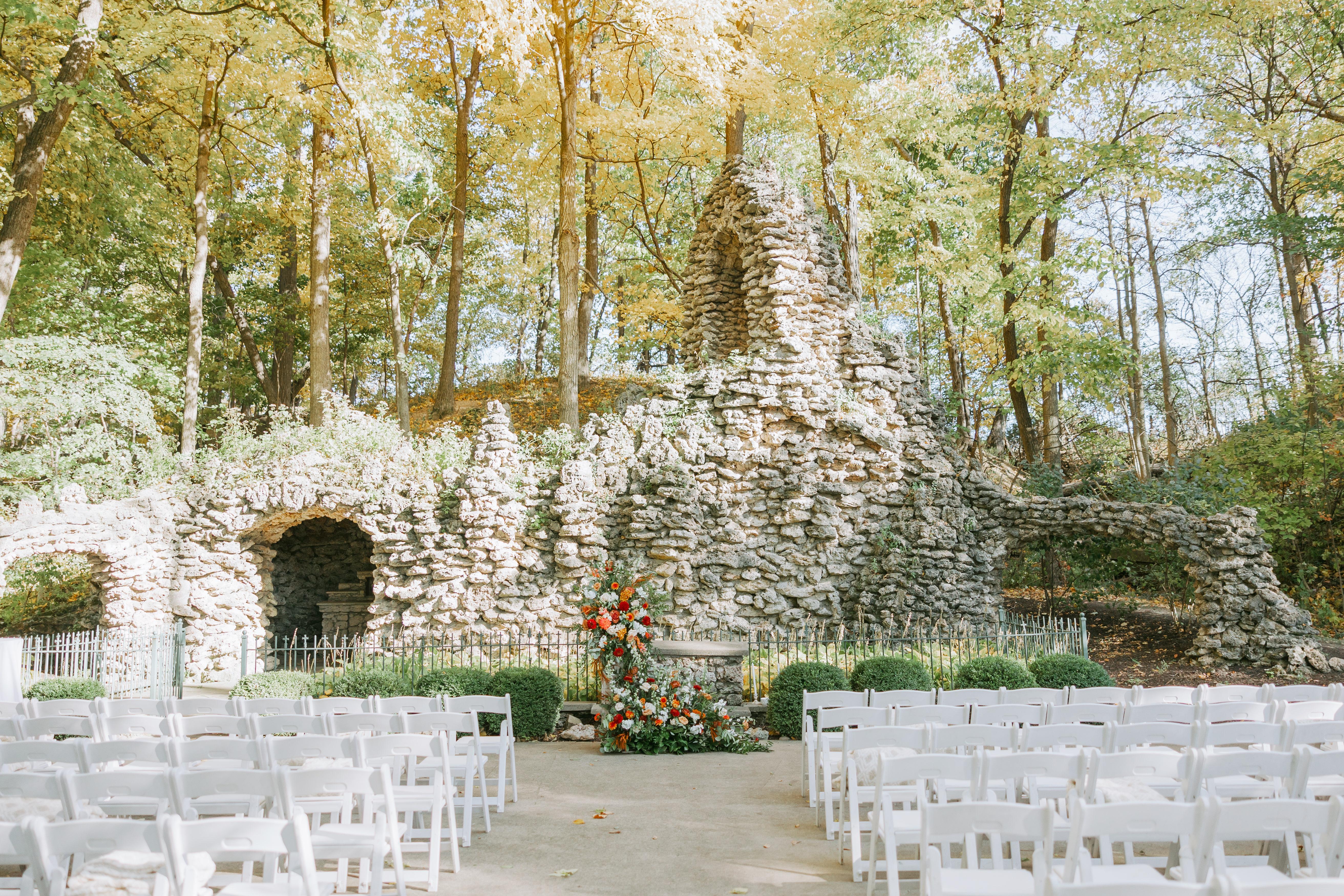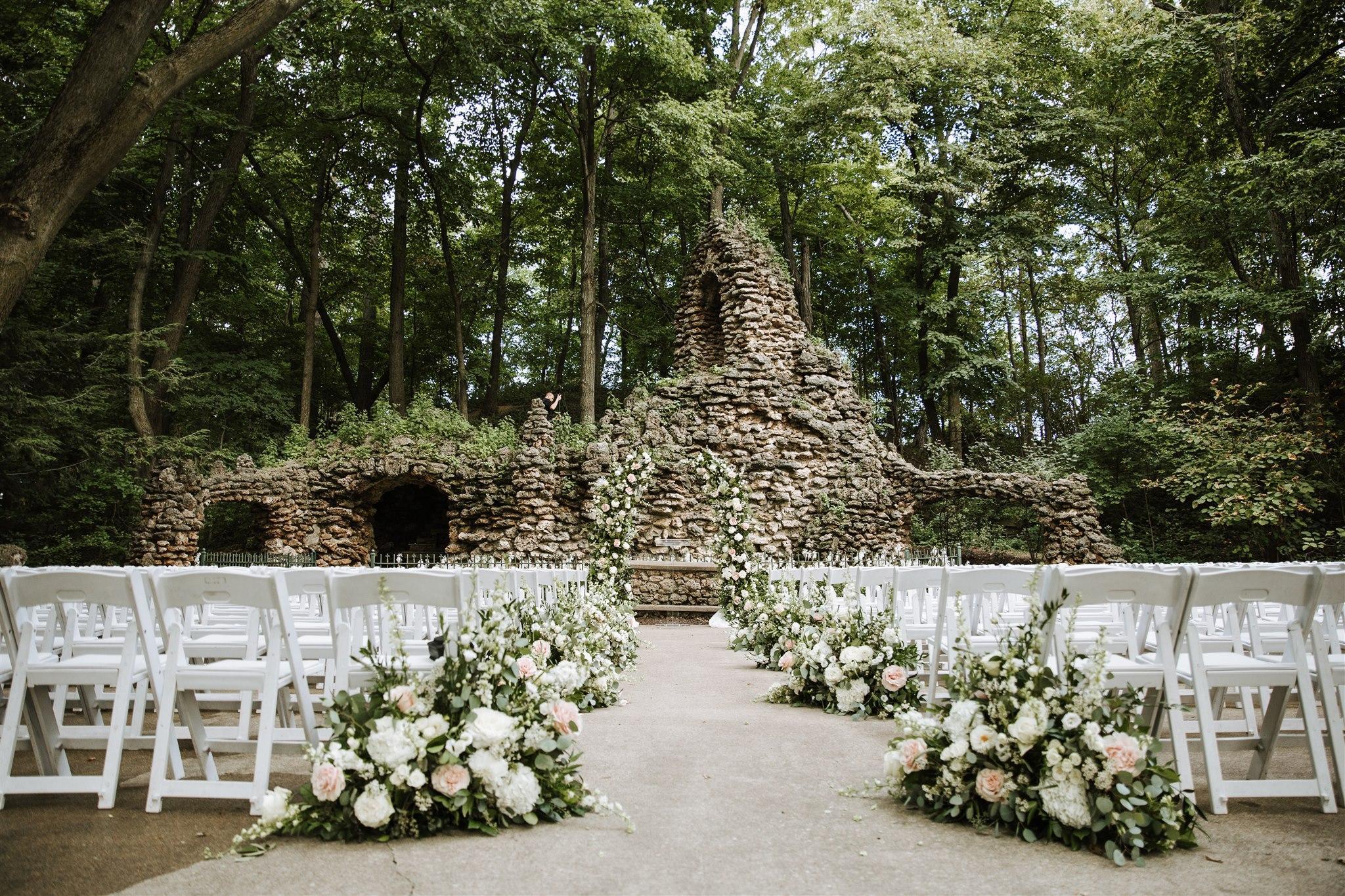 The Grotto is a replica of the famed grotto located in Lourdes, France. It is set in a wooded grove next to a small stream, providing guests with a sense of serenity. The grotto’s natural beauty adds a calming quality to any event and is ideal for an outdoor wedding ceremony. The site is a short, but pleasant walk across the lush grounds of Nazareth Hall and over a picturesque bridge. Your hostess will operate a golf cart for any guests with special needs.
