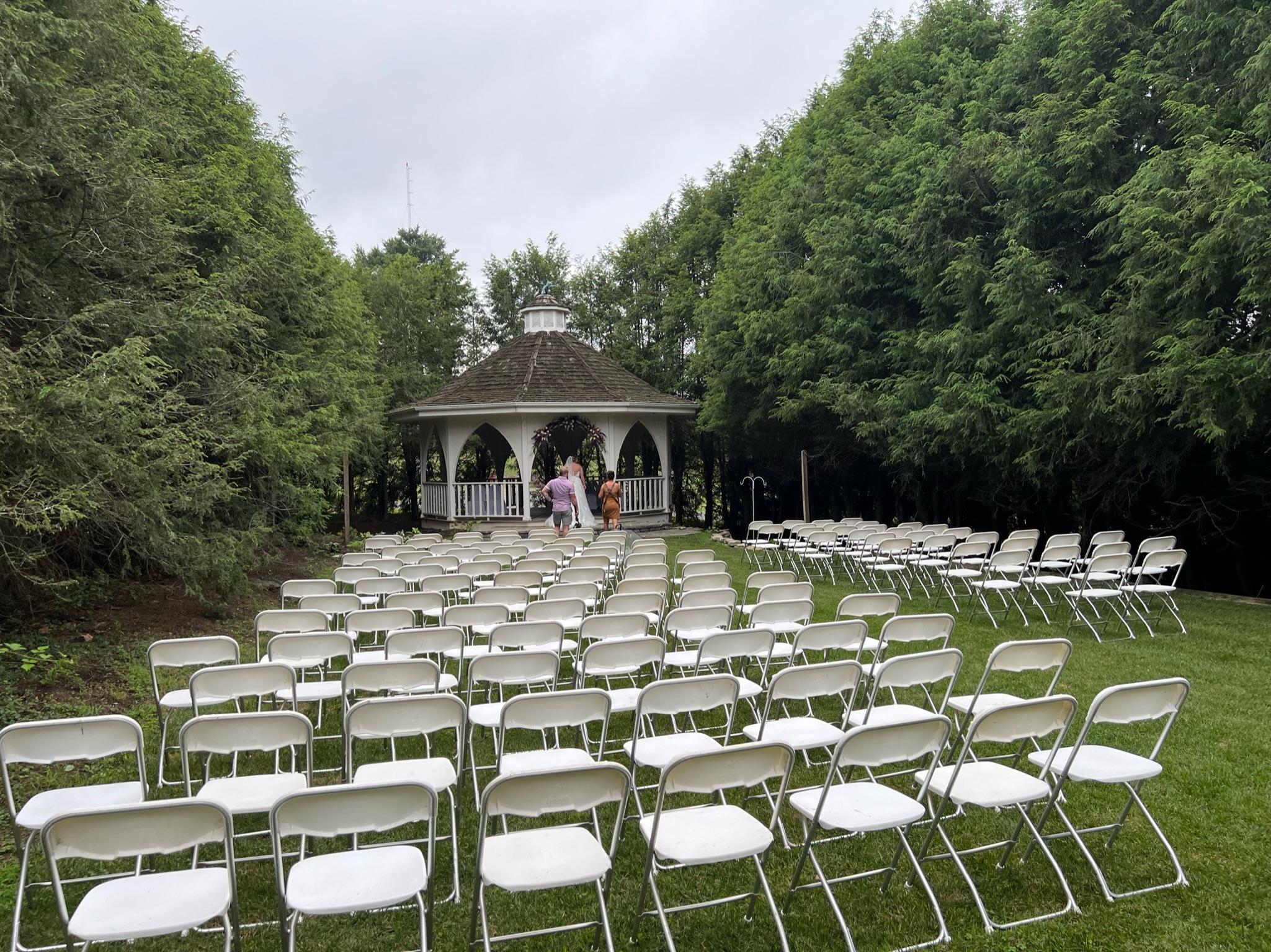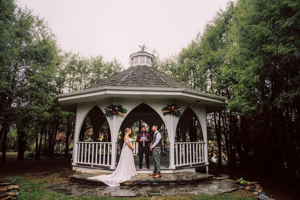 Have your ceremony at our picturesque Gazebo and courtyard nestled in between our Hemlock Trees