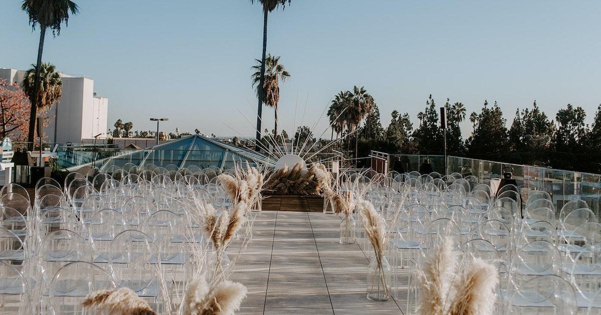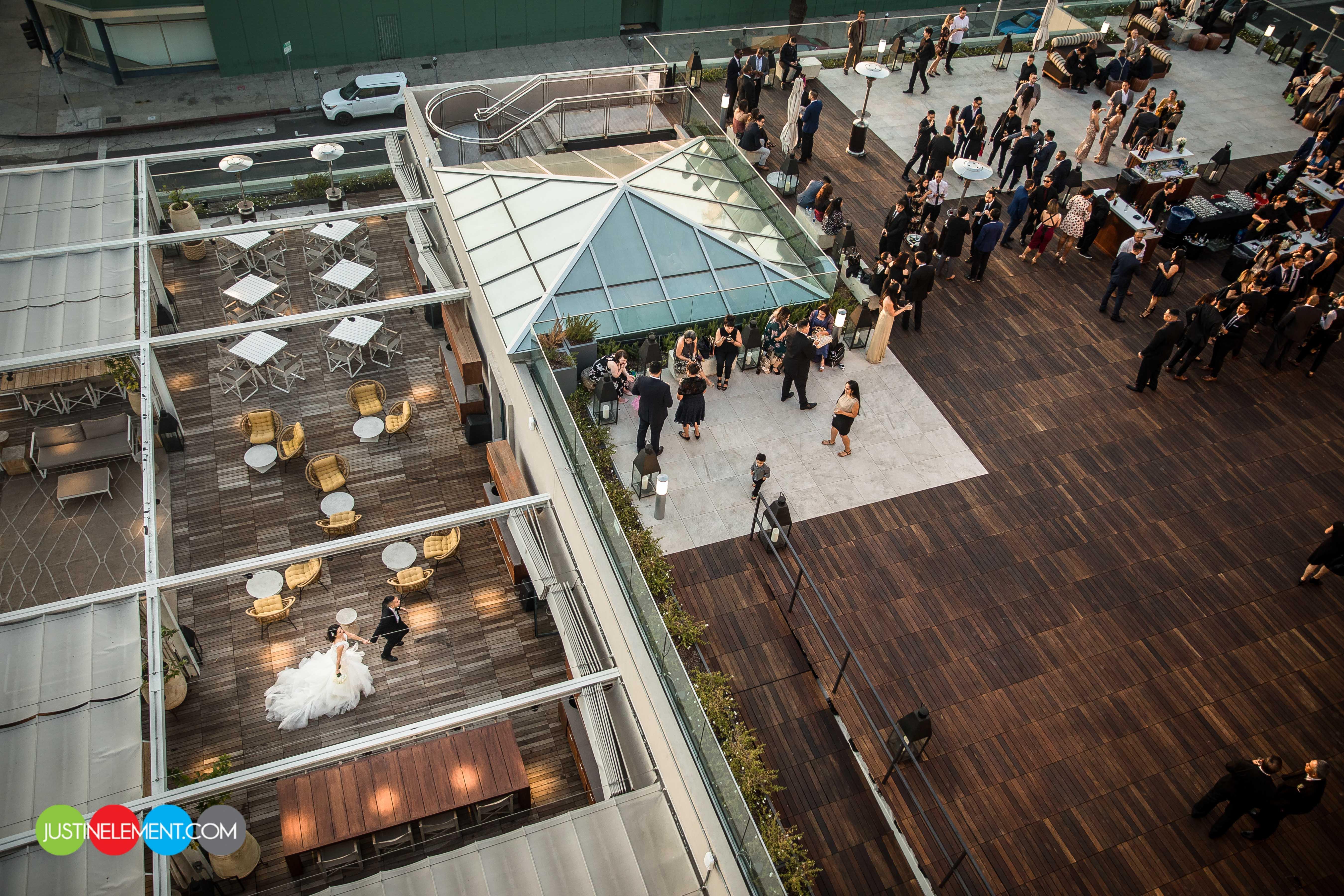 This space provides around 7,000 sq ft of outdoor rooftop space, perfect for a wedding ceremony, reception, and party overlooking the iconic Sunset Boulevard. As the sun sets the city lights provide the perfect setting for a celebration of your new chapter. The space has A/V capabilities and can be elevated to fit the personality of any wedding or couple.