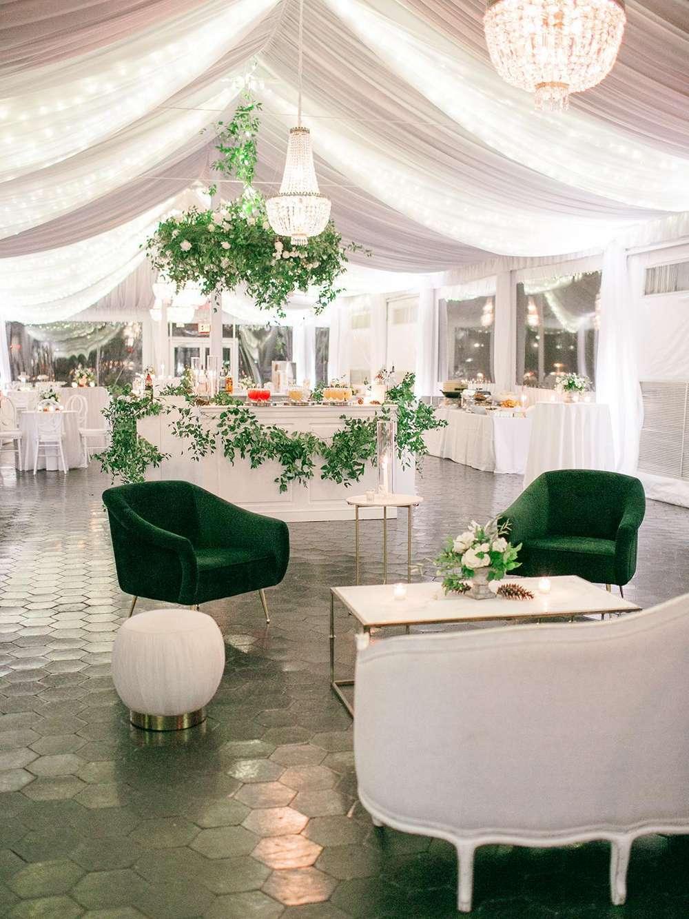 State of the Art lighting system with pin spotting for customization | Fabric ceiling to attain greater acoustics in the space | Tables | Chivari Chairs and Cushions | Chinaware, Glassware, and Silverware | Color Choice of Cotton Linen | Power throughout the space | Pocket door to expand the room | Floor to ceiling windows | Chandelier | Lighting Power Source | The sides of the tent are retractable