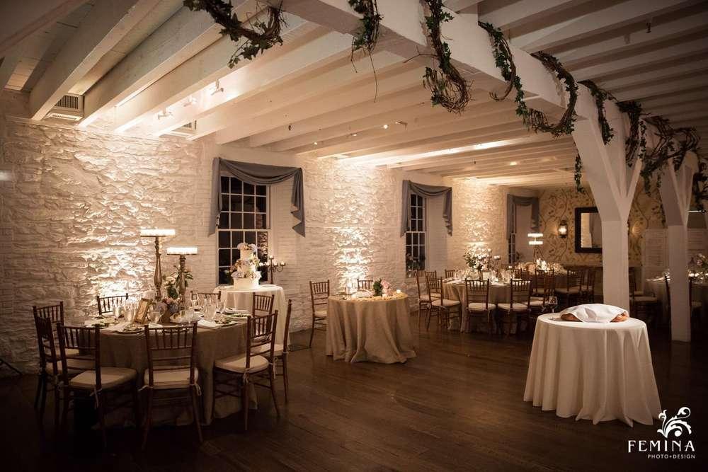 The outdoor ceremony terrace at the historic Stone Mill is an idyllic location to say your "I dos". Surrounded by NYBG's majestic evergreen trees with the backdrop of the Bronx River, this picturesque stone terrace offers an intimate and natural setting not often found in the tri-state area. Your ceremony includes one additional hour of service, white ceremony chairs, and a welcome beverage provided to your guests upon their arrival. Stone Mill has the Lower Level Reception Room available with glass doors leading to the outdoor terrace, makes it convenient to flow inside and outside with ease. And, the Dinning Room which is a exposed original brick walls and reclaimed wood floors add to the charm and character of the room - perfect for an intimate gathering of up to 120 guests