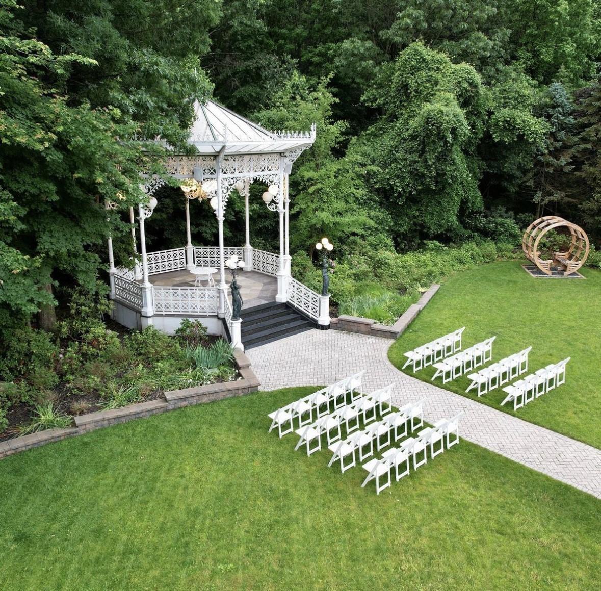 Nestled in 415 acres of protected woodlands, The Gardens at Nicotra’s Ballroom is the perfect spot for your outdoor wedding ceremony. Our beautifully manicured great lawn and Florentine gazebo are complimented by unique sculptures and grand fountains. Pathways lead through the trees to a romantic bridal swing creating the ideal backdrop for photos.
