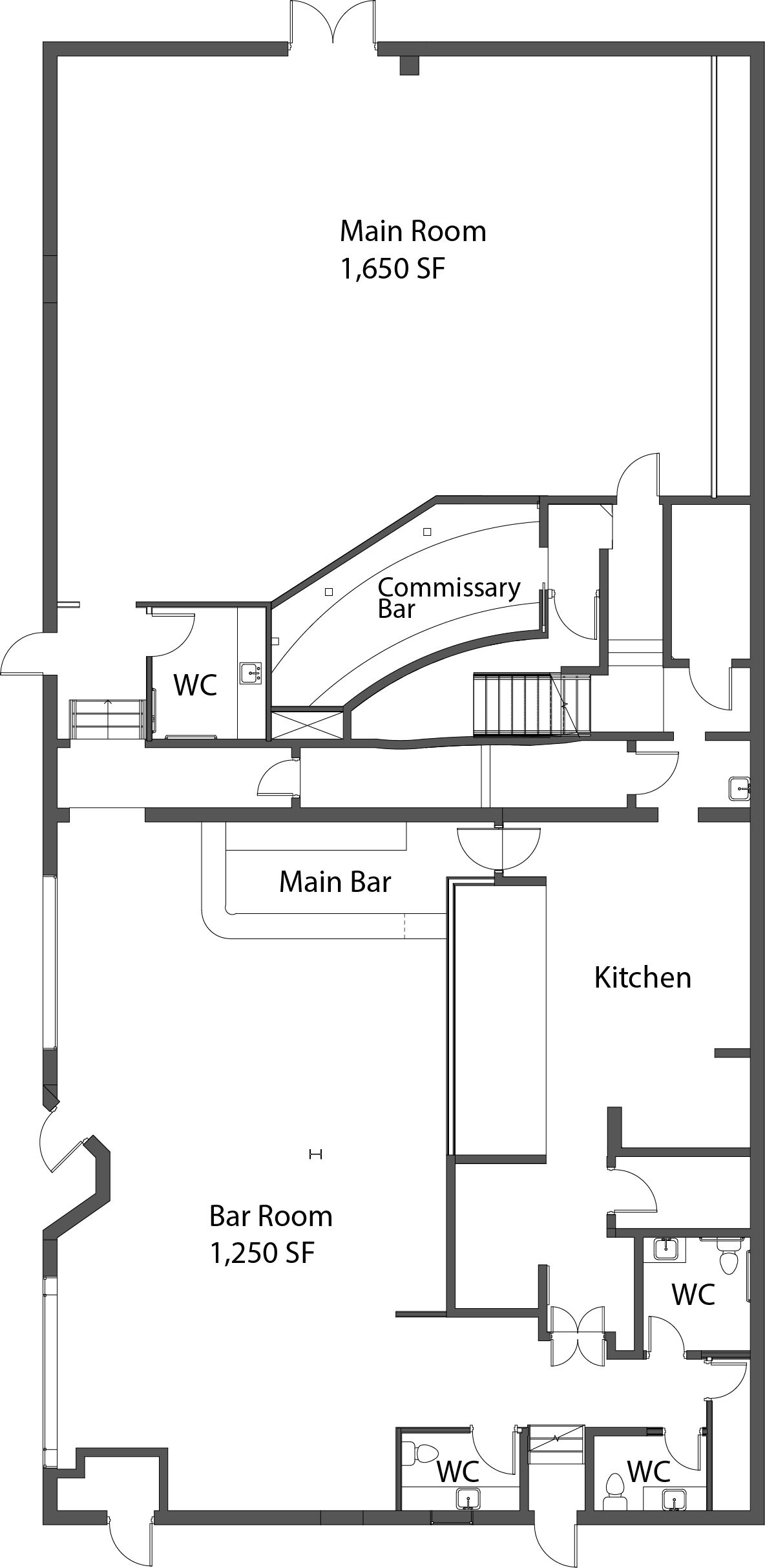 This space features a 1,650 sq ft main room where you can immerse your guests in different worlds, the lounge area is 1,250 sq ft and holds a bar.
