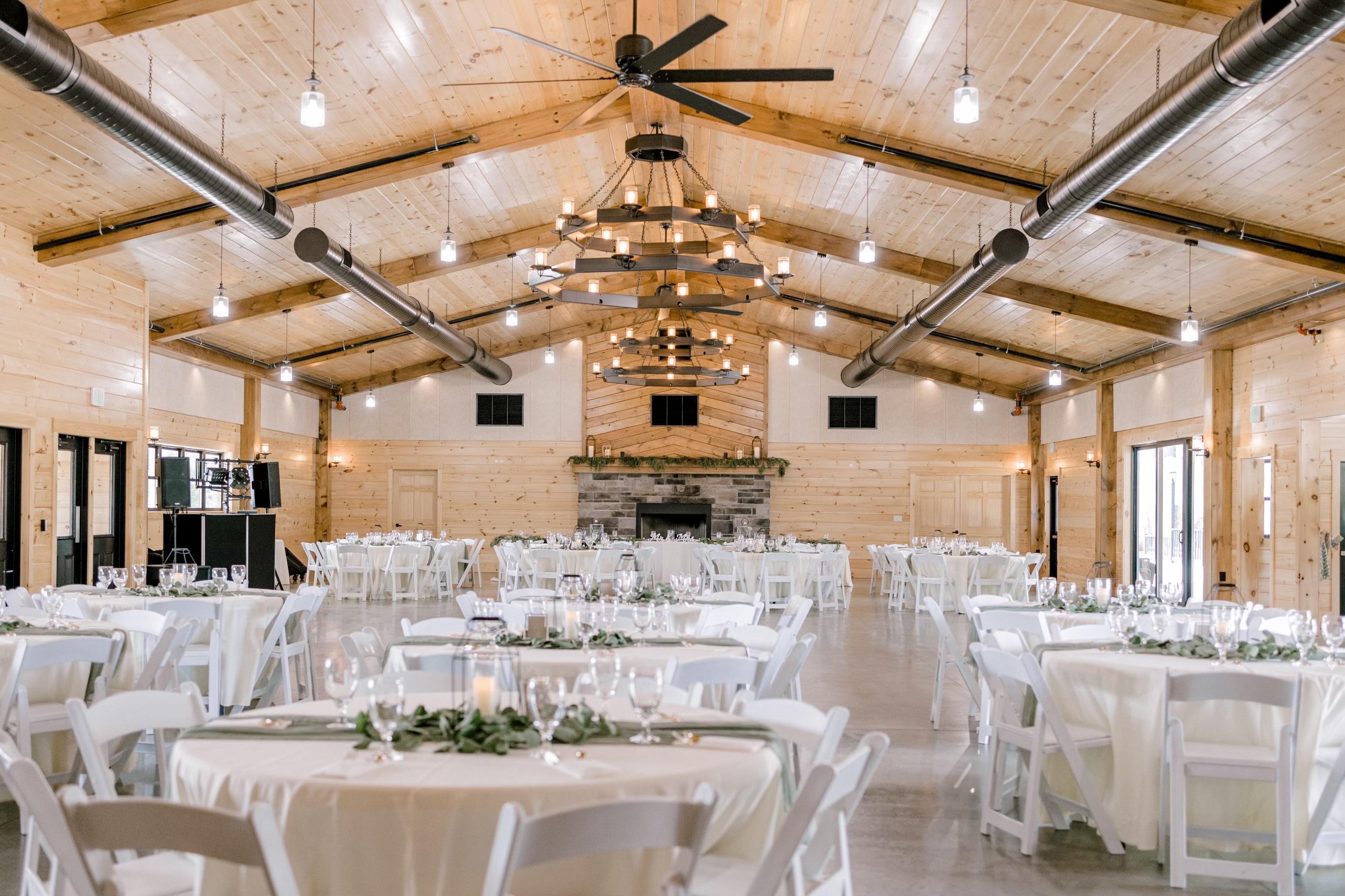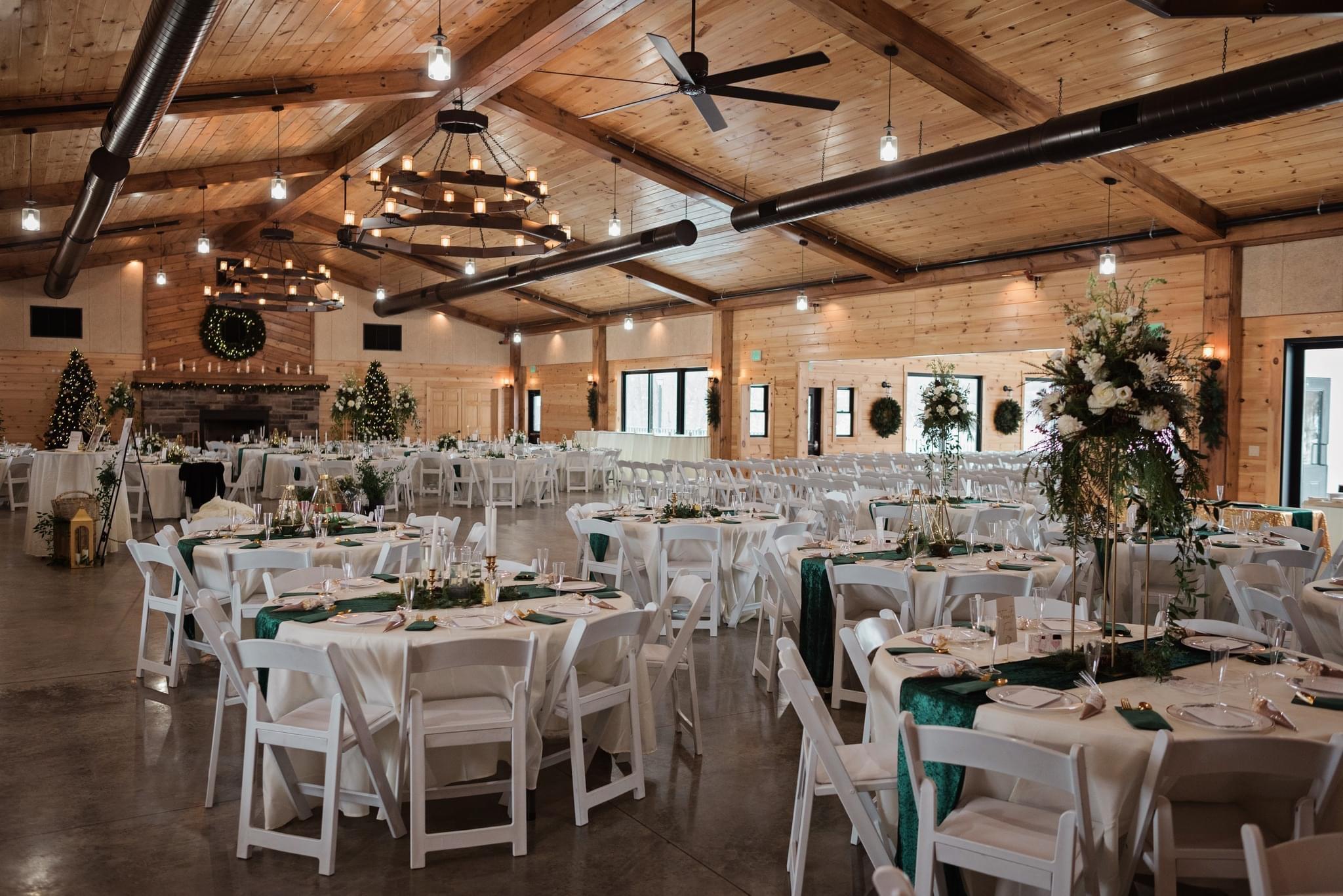 Heating & Air Conditioning year-round, Indoor & Outdoor Ceremony Sites, Indoor Reception Space, Bridal Suite (with Restroom), Groom's Suite (with Restroom), Stone Fireplace, 14 ft. Bar, Chairs & Tables to accommodate up to 400 guest (Set up and take down provided), final cleanup, Handicap Accessible Parking, backup generator, professional bug spray, staff available for janitorial services, maintenance or other emergencies.