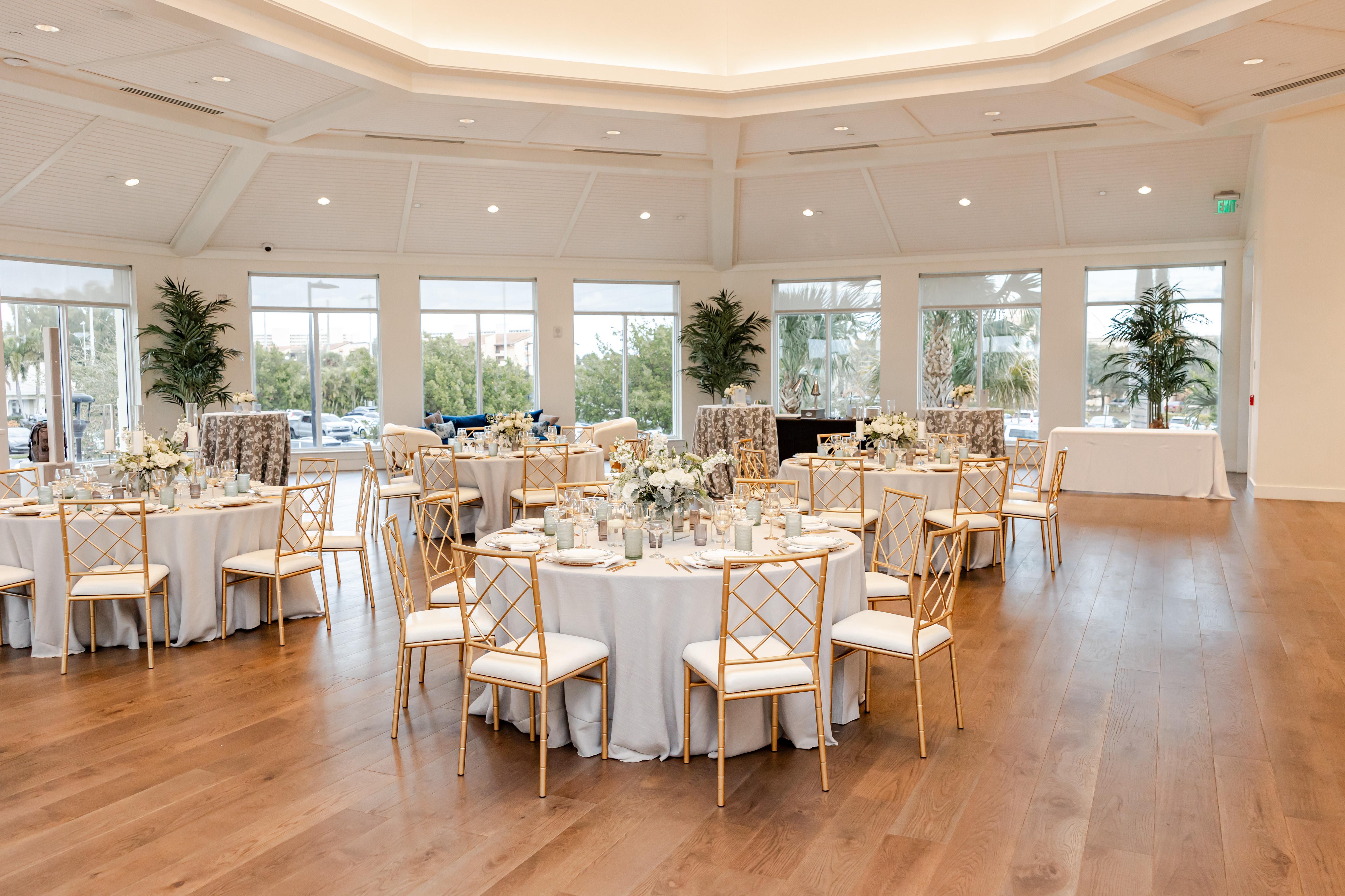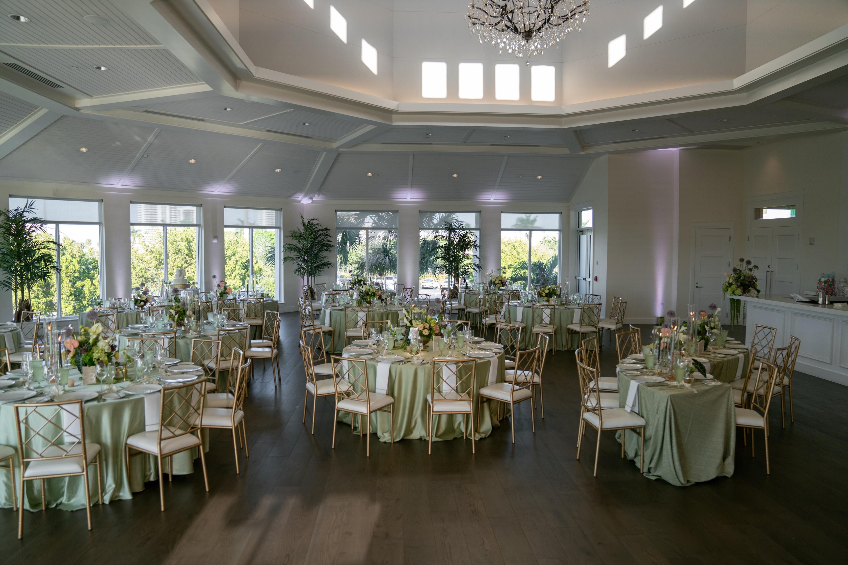 Our 3,228-square-foot ballroom, adorned with floor-to-ceiling windows, overlooks the greens and tropical flora, creating an atmosphere of natural beauty and serene elegance. With a 35-foot-high wood-beamed ceiling and a neutral, sophisticated palette, this space is a canvas for your dream event, whether it's an intimate wedding, a grand reception, or a themed celebration.