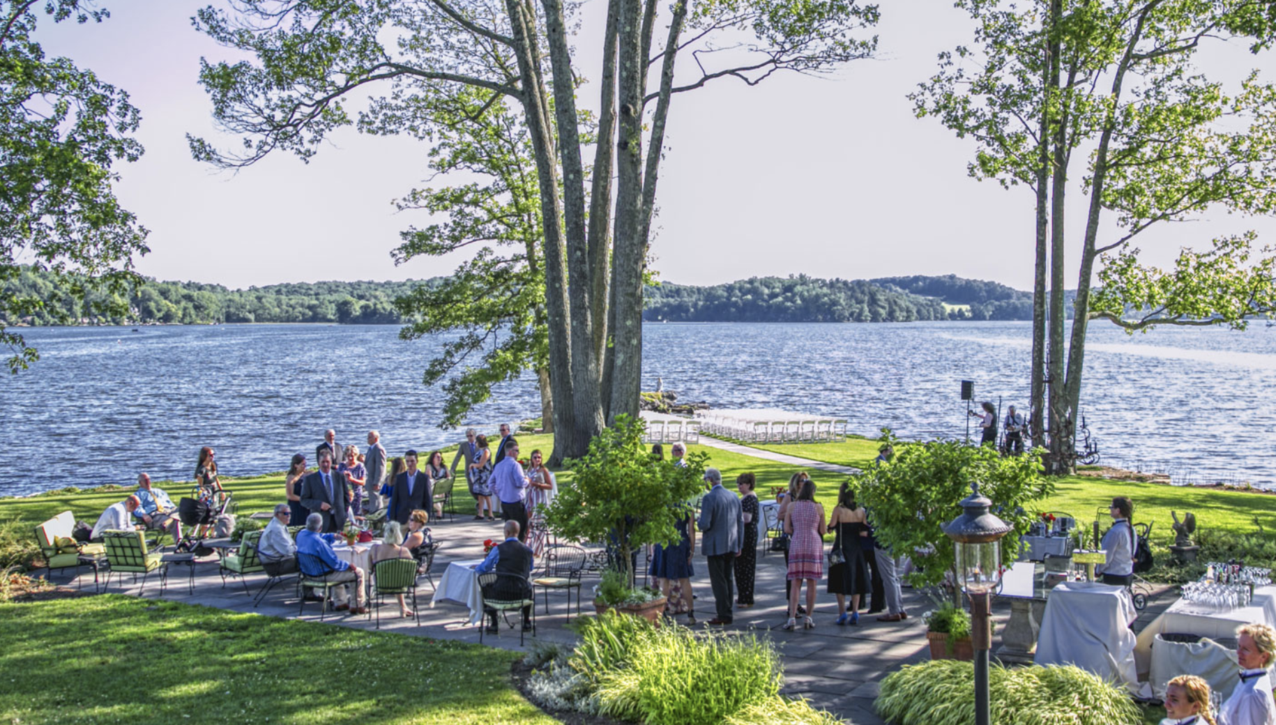 With wide swaths of lawn, long stretches of sparkling water, and towering trees dotting the landscape, North Shore House’s property is awe-inspiring in its own right. Stone terraces, a rustic fireplace, and beautiful landscaping—complete with plenty of places to gather and unwind—surround a charming lake house, creating a picture-perfect setting for unforgettable weddings and special events.