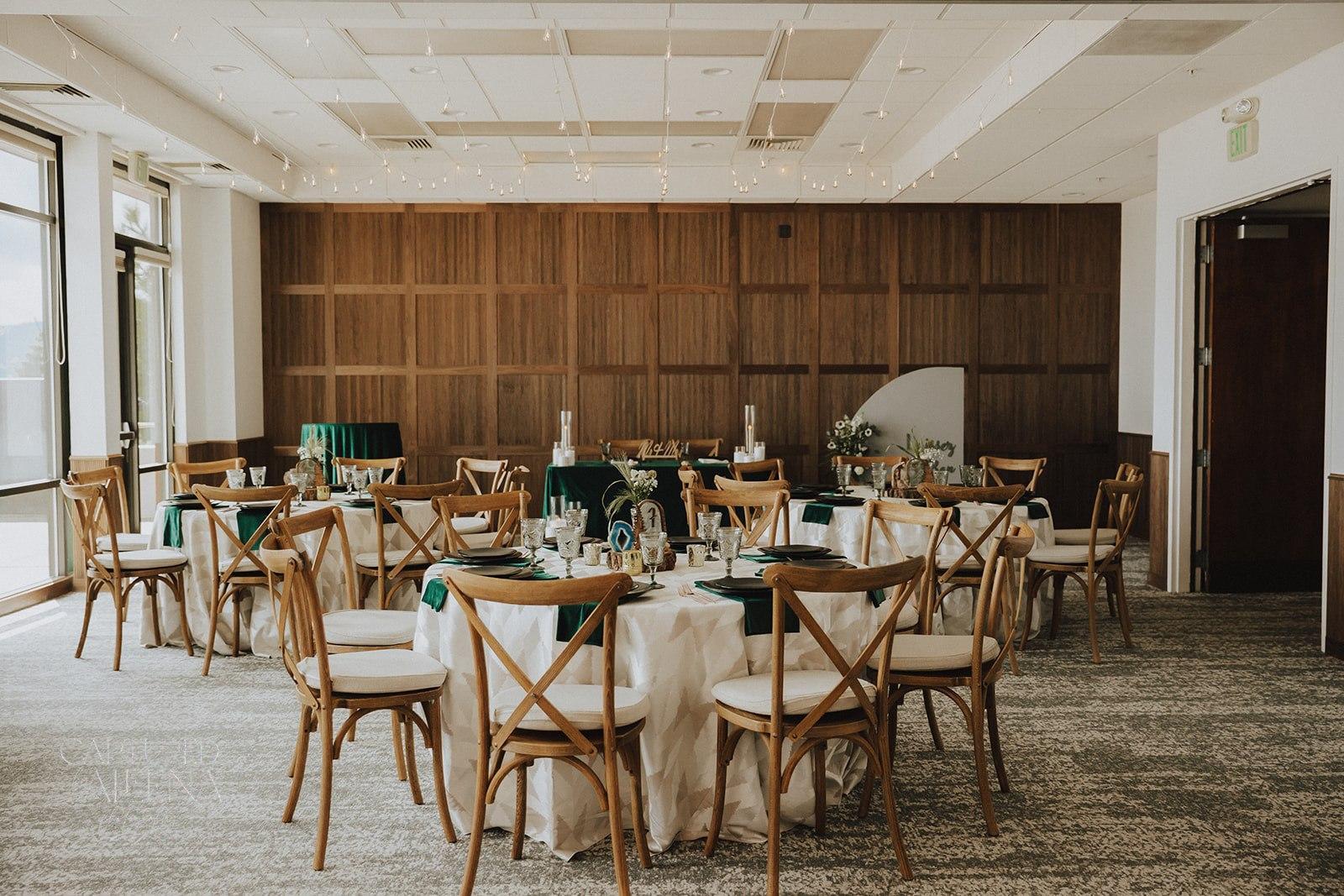 - Cross back wooden chairs - Full length linens - Napkins - Wedding Suite 2 Hours Before Ceremony - Rectangle Wood Arch - Reception White Folding Chairs (on pavers only) - 6 Cocktail Tables - Water Station - 5 ft Round Guest Tables - fits 8-10 guests - As many gift/ guest book/ dessert/buffet tables you need - Indoor Dance Floor - Bars and Ice - Glassware, Flatware, China and Bar Glassware