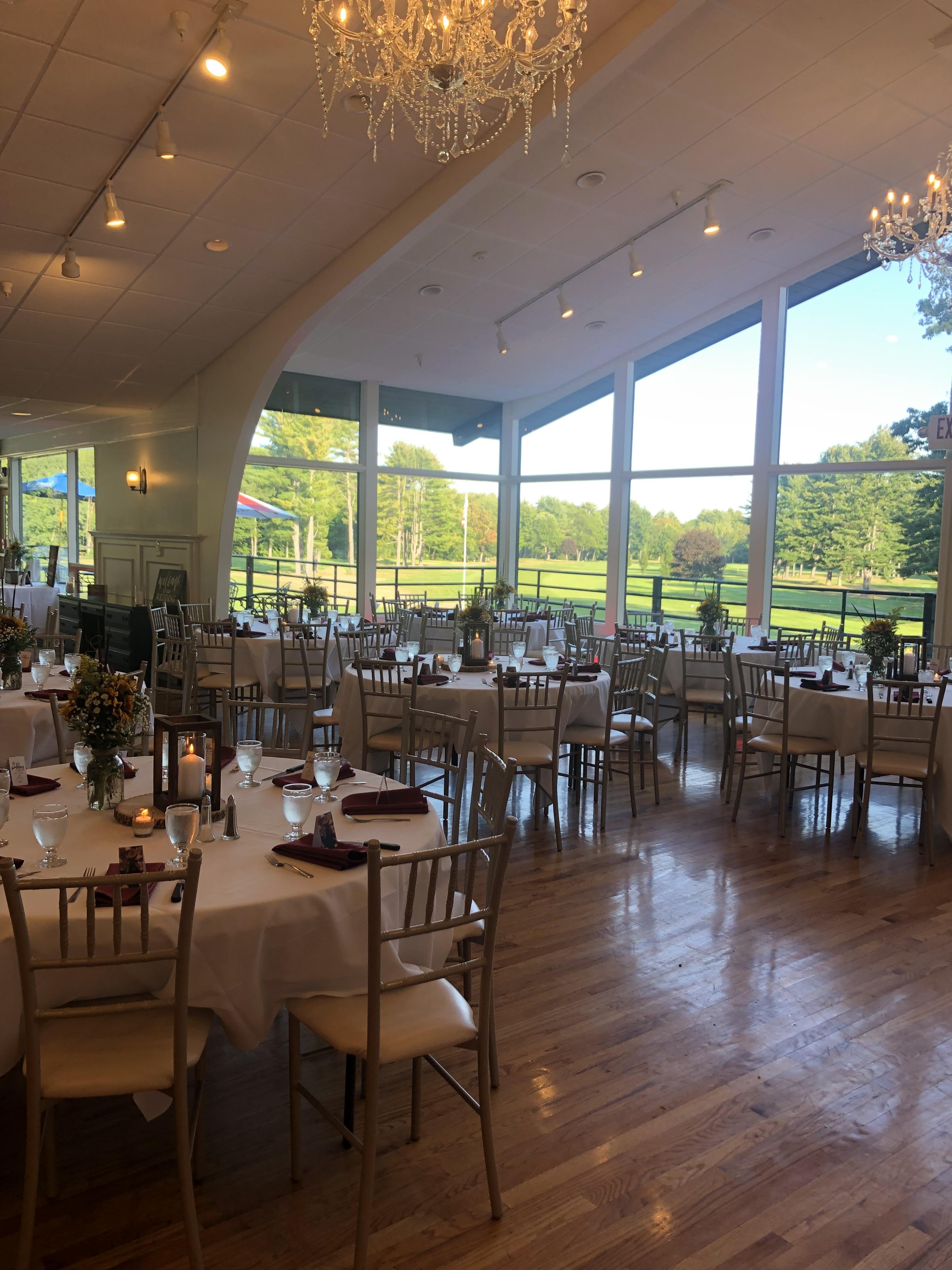 My husband and I got married at the Northampton Country Club in the fall of 2023. We had 110 people and everyone loved the crisp clean atmosphere of the venue. People had plenty of space to move about and we had a good size dance floor as well! My mother in-law was the one who made the suggestion to get married here as she had attended a wedding the previous year and loved it. We chose to have our ceremony outside on the hill in front of the gazebo and the setting was perfect. The trees had almost fully turned and the backdrop looked amazing in our photos. I loved that I could choose from a list of vendors and not be pressured into a preferred caterer. There was a shuttle from our hotel, which made this location very accessible for out of town guests. I highly recommend this location, you get so much value for what they offer. The bar staff was very accommodating and made the night fun for our guests!