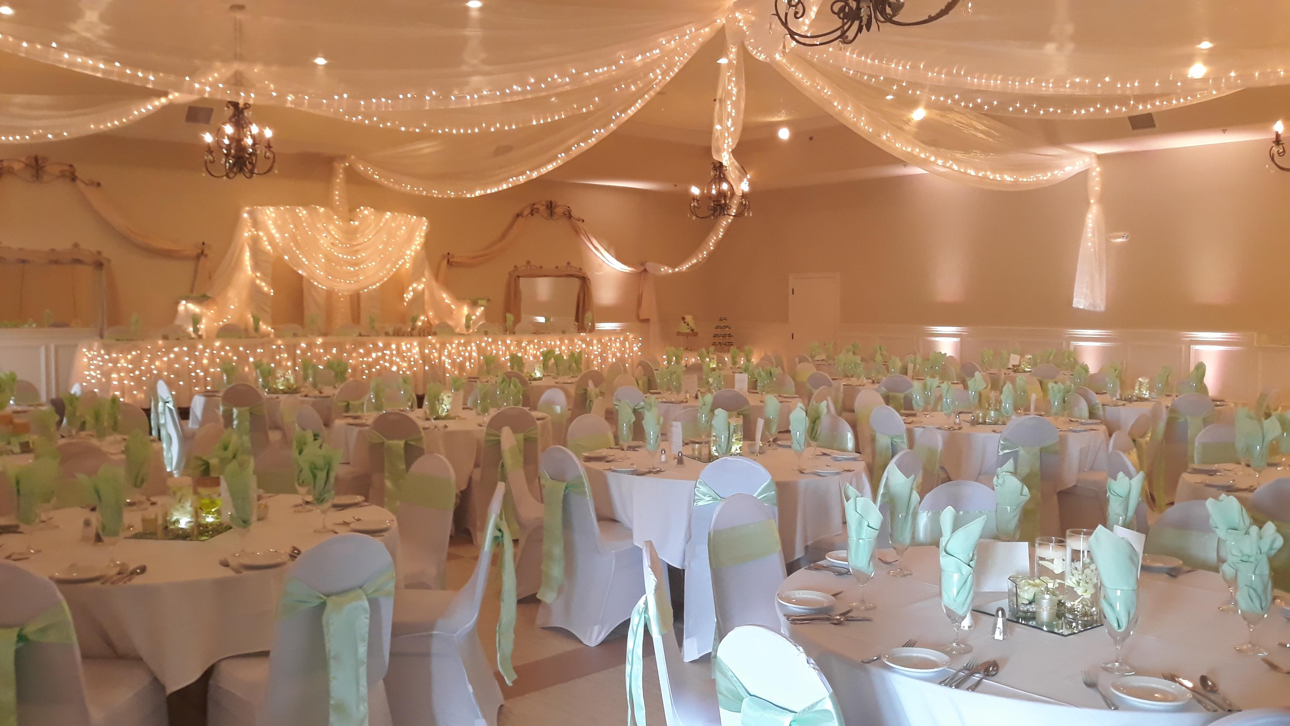 (Set up, clean up, tables, chairs , your choice of white, ivory, black table linens, use of our fine china and crystal, staging to elevate your head table, skirting for head table, central sound system for cocktail and dinner music, dimmers for total lighting customization, staff, event planning, and an event coordinator provided the day of your event)