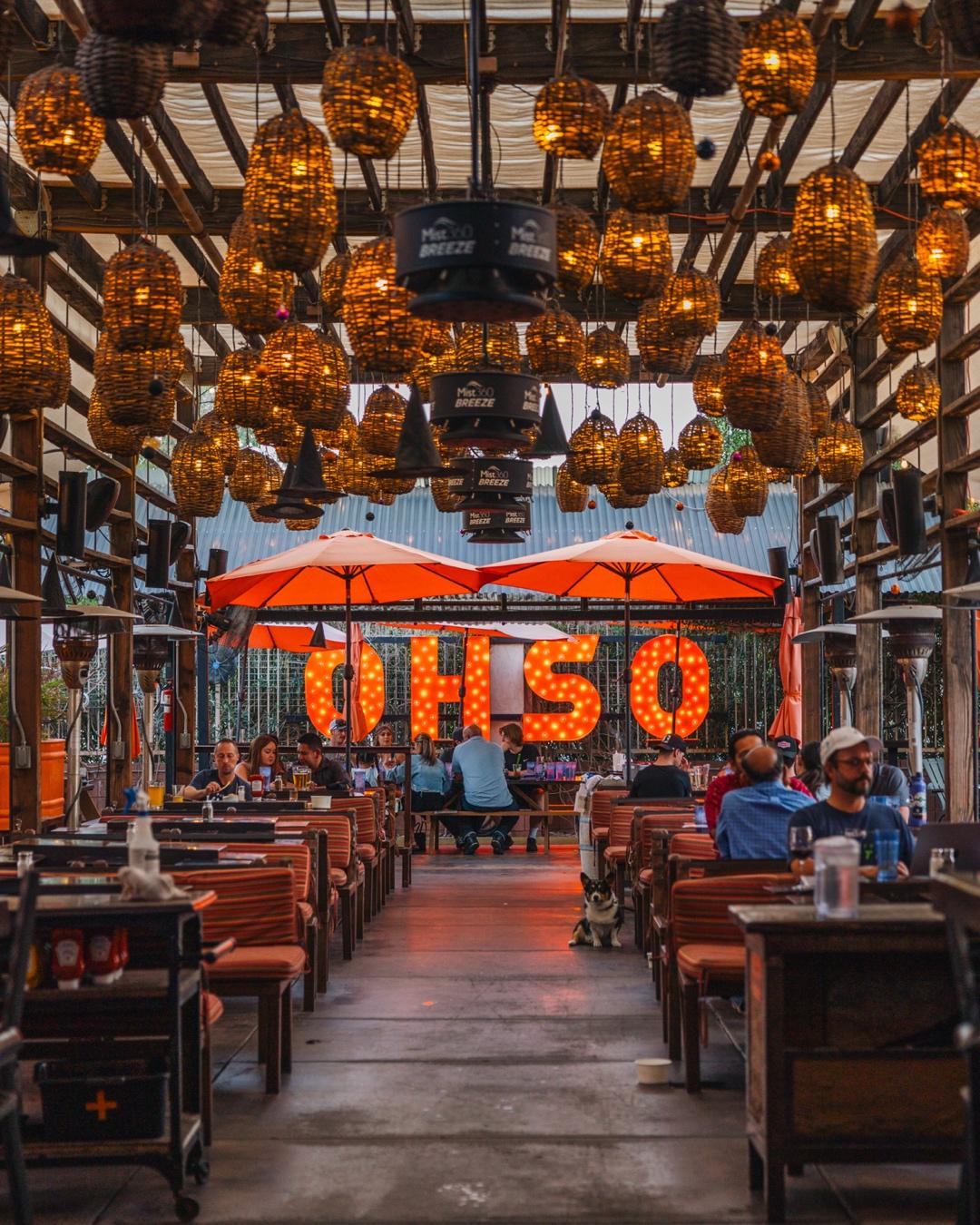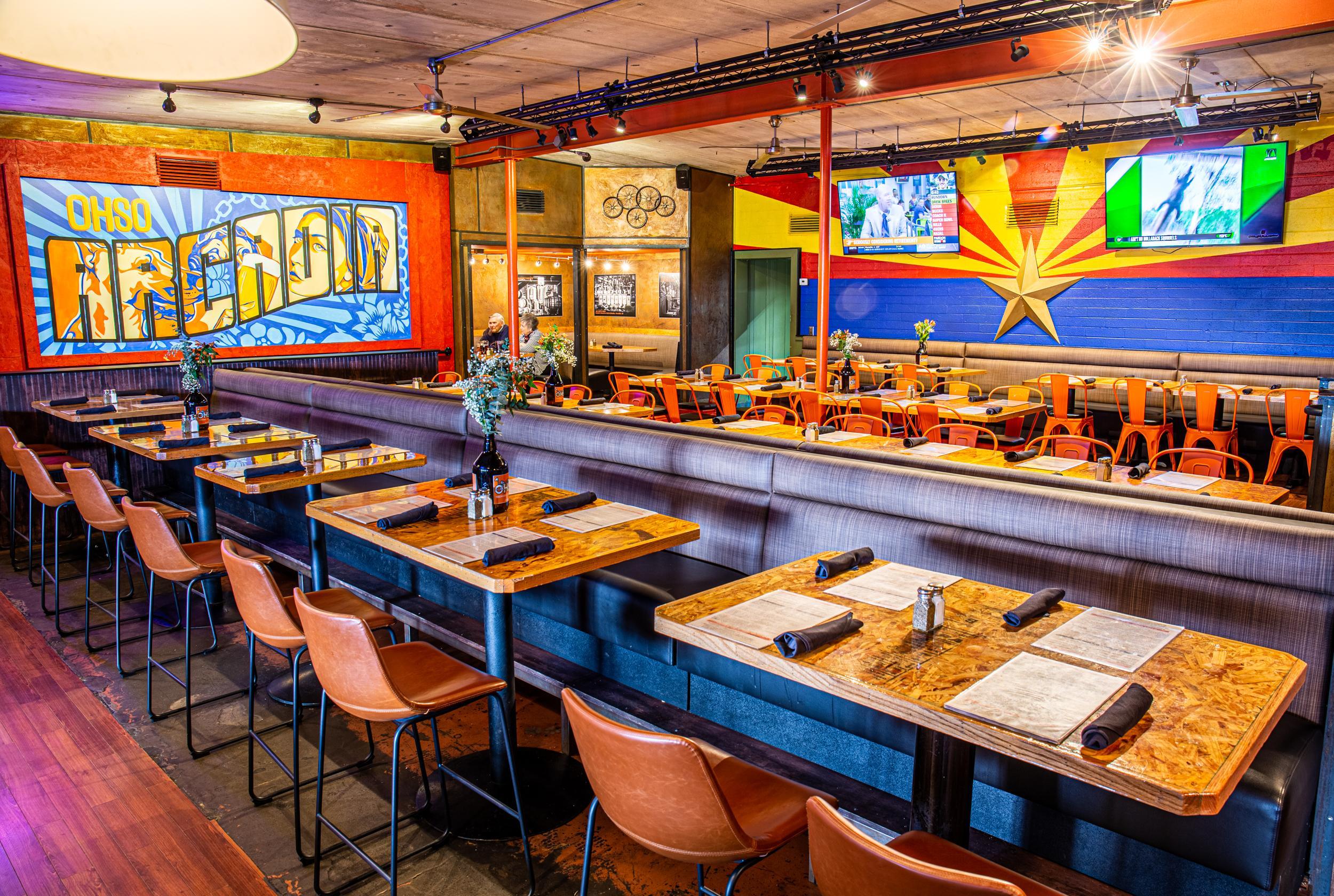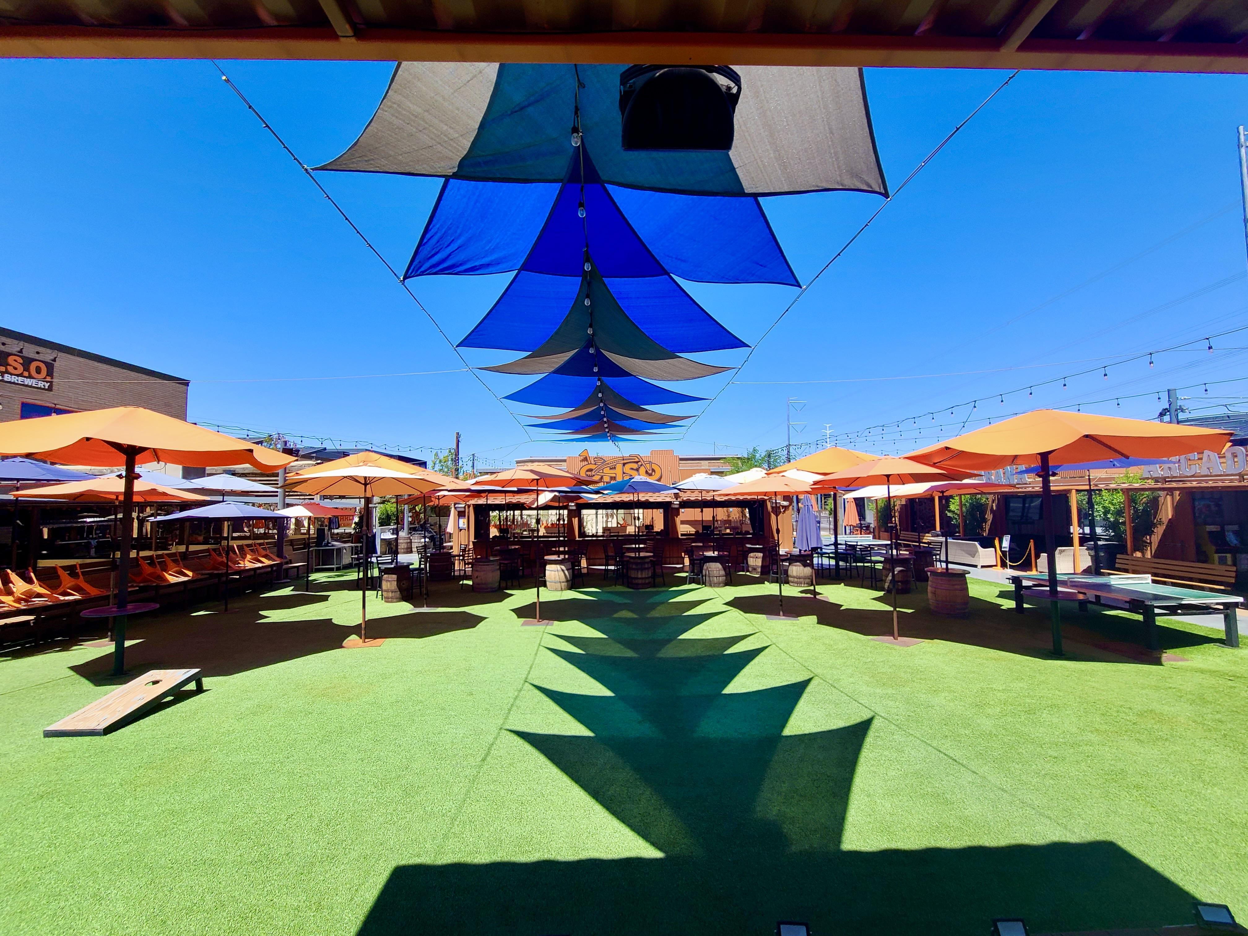 Our Downtown Gilbert location has the best patio in town. We’re talking about a full-on park with games, a full bar, and even an enclosed dog park—all just behind our two-story brewery and restaurant. Bring the whole family to enjoy a burger inside our brewery, then head to the park to play a lawn game or listen to live music. We have a full bar and an enormous T.V. screen so you can enjoy your favorite sporting event or movie from the comfort of a picnic blanket.