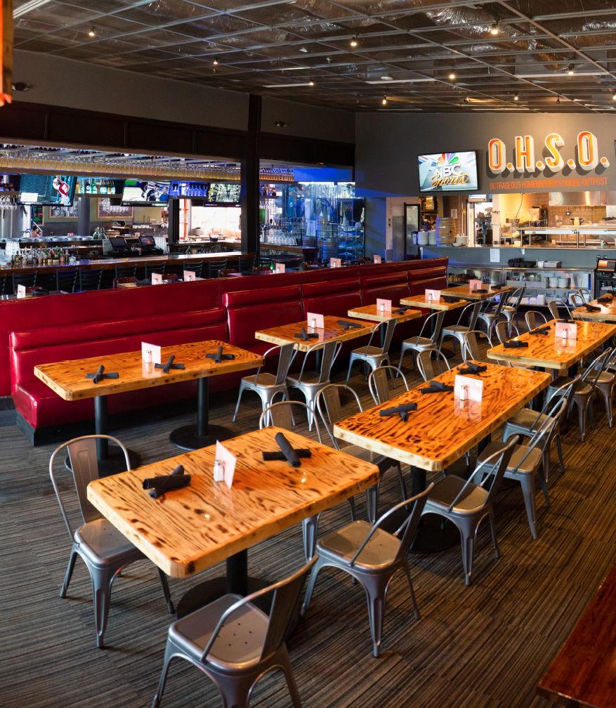 - Wood Top Tables and Dining Chairs - Wall Mounted TV's - Central Heat/AV, WiFi Access throughout the venue - ADA Accessible