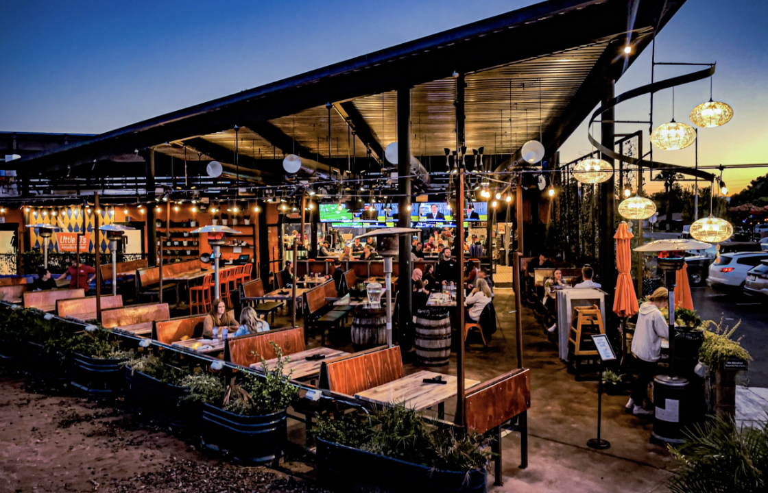 - Picnic style seating - Barrel High Top Tables - Lawn Chairs - Umbrellas, Sail Shades and Fans for Summer - Heathers for Winter - Free Arcade - Jumbotron - VIP Cabana - Photo Op Area - Yard Games: Corn Hole, Giant Connect 4, Ping Pong Tables - Dedicated Bar - Bistro Lights - ADA Accessible