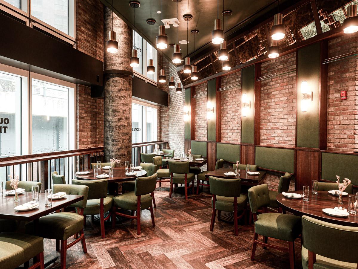 Step inside to find a beautifully designed space that incorporates green tones and warm exposed brick; taking inspiration from the surrounding area. O’Toole’s Way has two floors of indoor and outdoor seating, complete with a year-round terrace overlooking the High Line, high ceilings, plush and cozy seating nooks, as well as a fully open kitchen.