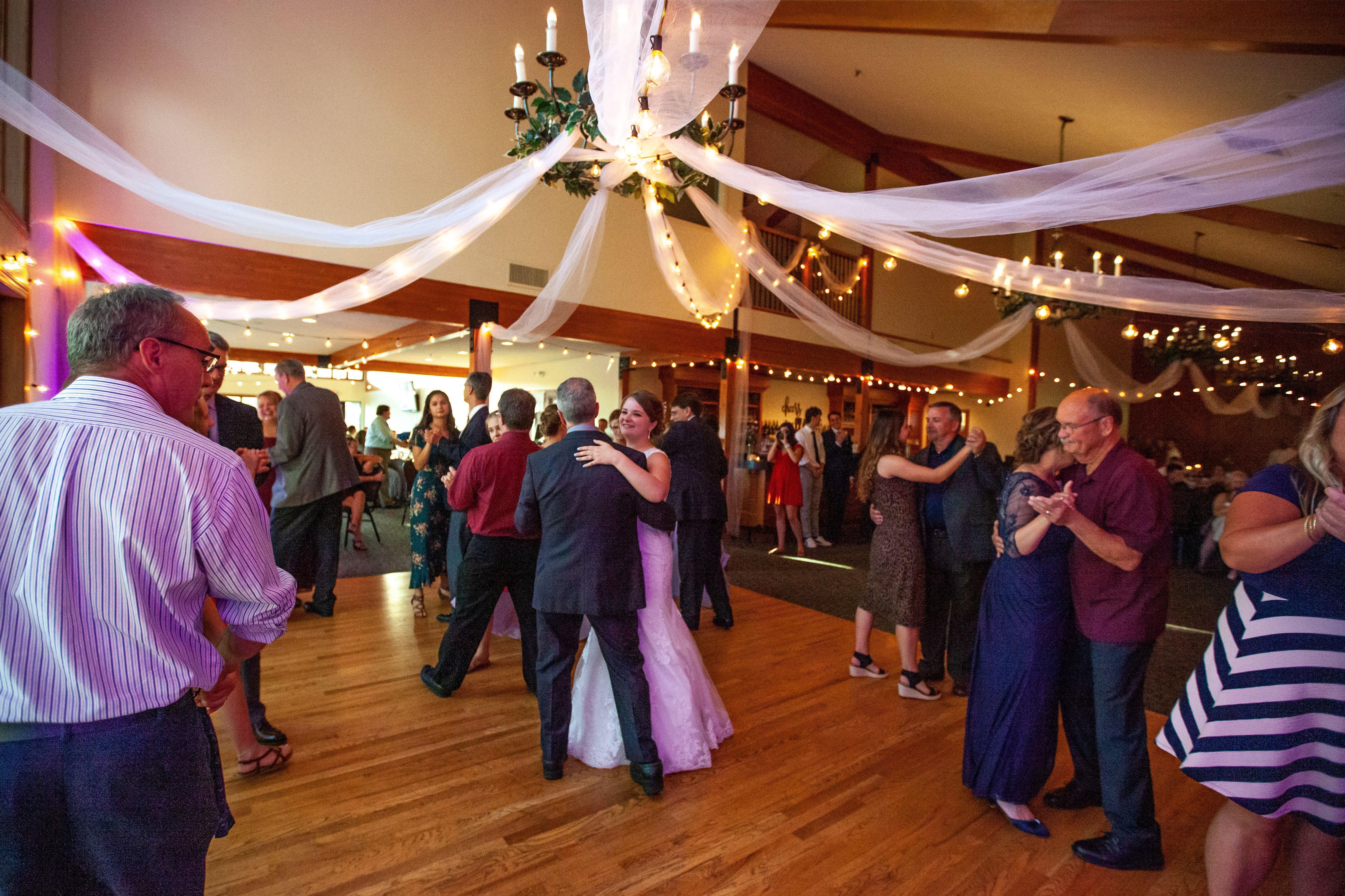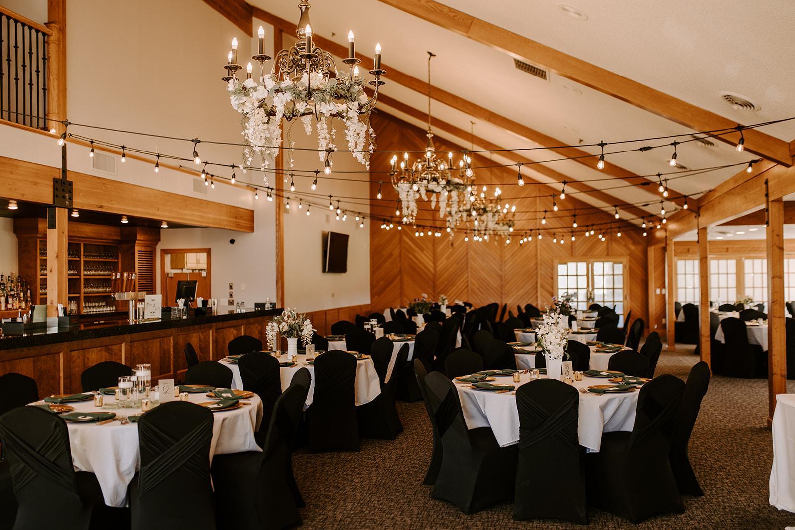 Our majestic Royal Oak reception room comfortably accommodates 400 guests with a full bar, 16' by 24' permanent dance floor, and even a "Juliet" balcony. This large room feels intimate for groups small to large and offers unique details featuring a natural stone fireplace, custom head table, and state of the art video equipment. The clubhouse offers views of the golf course while keeping your party private.