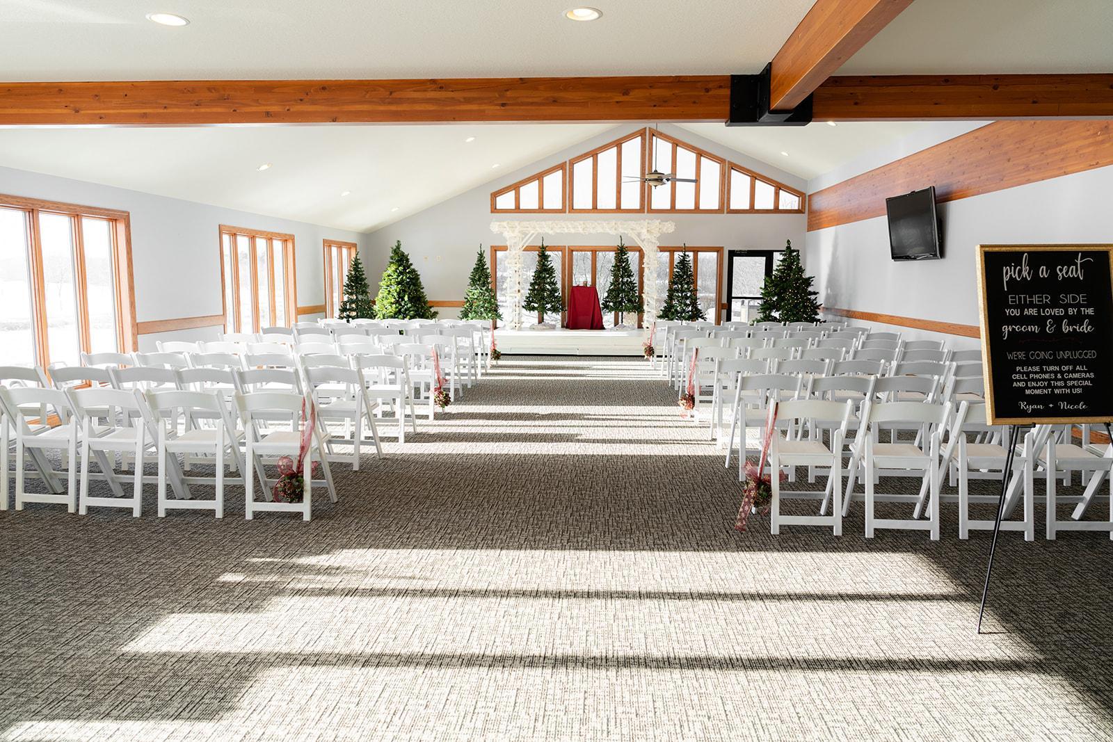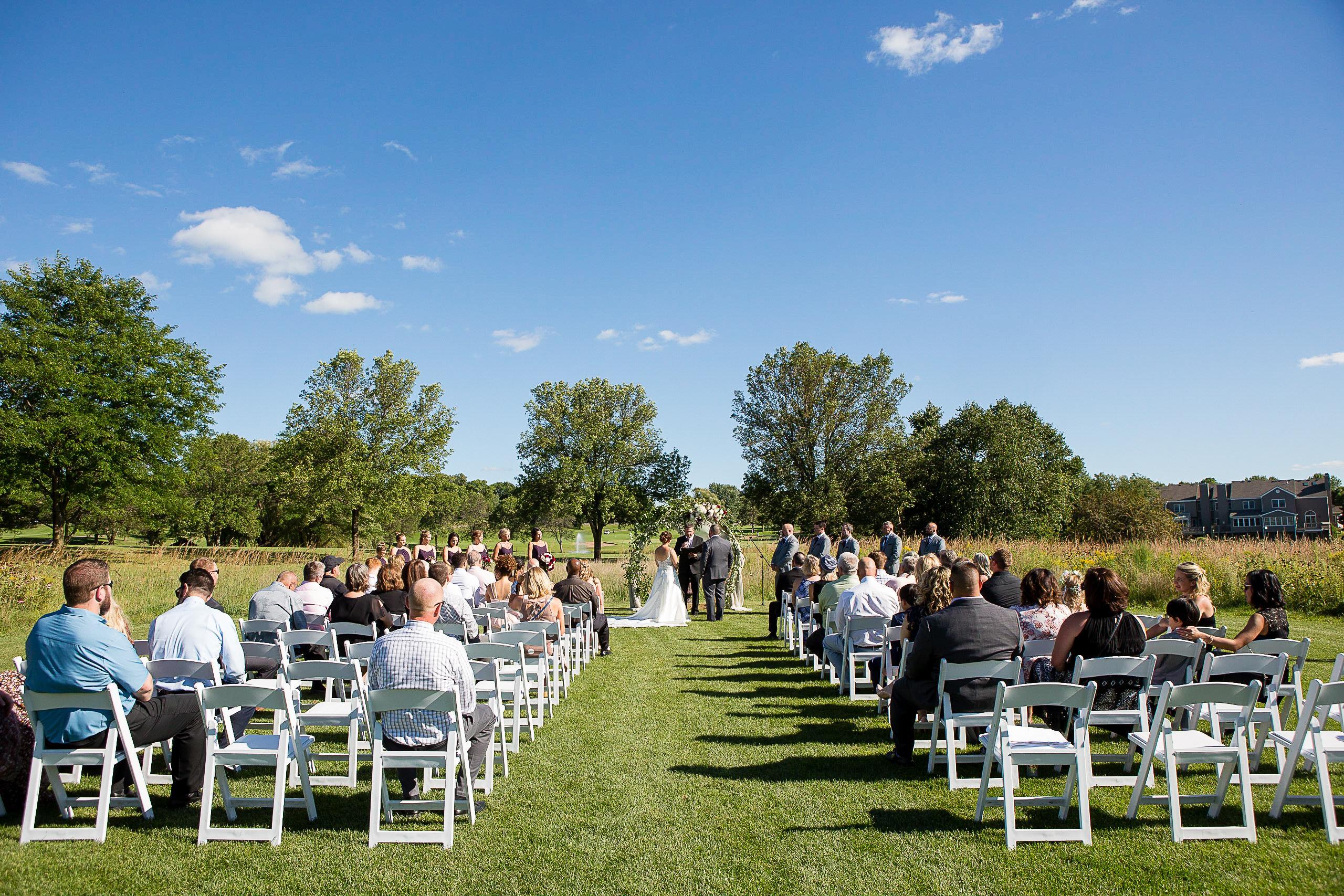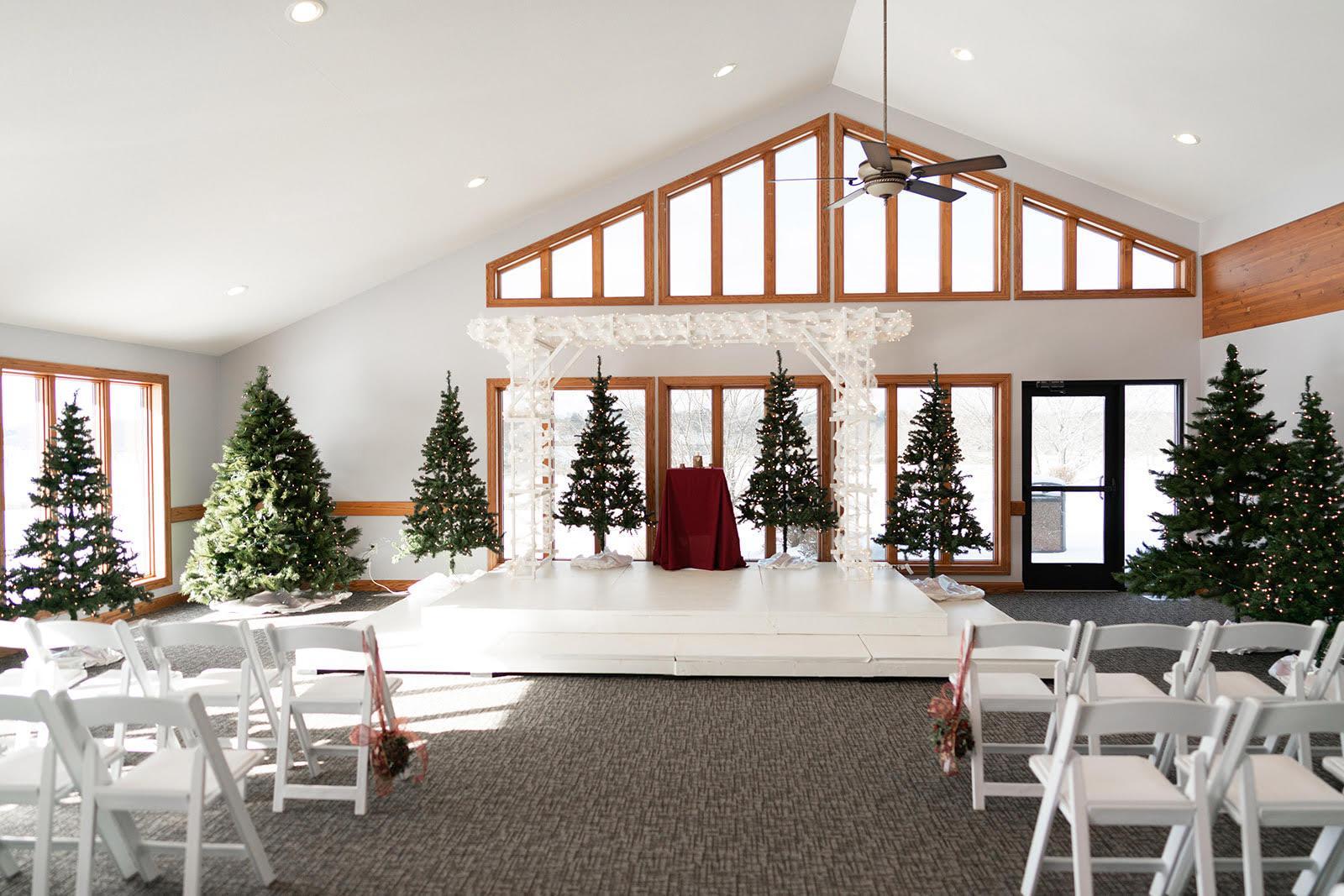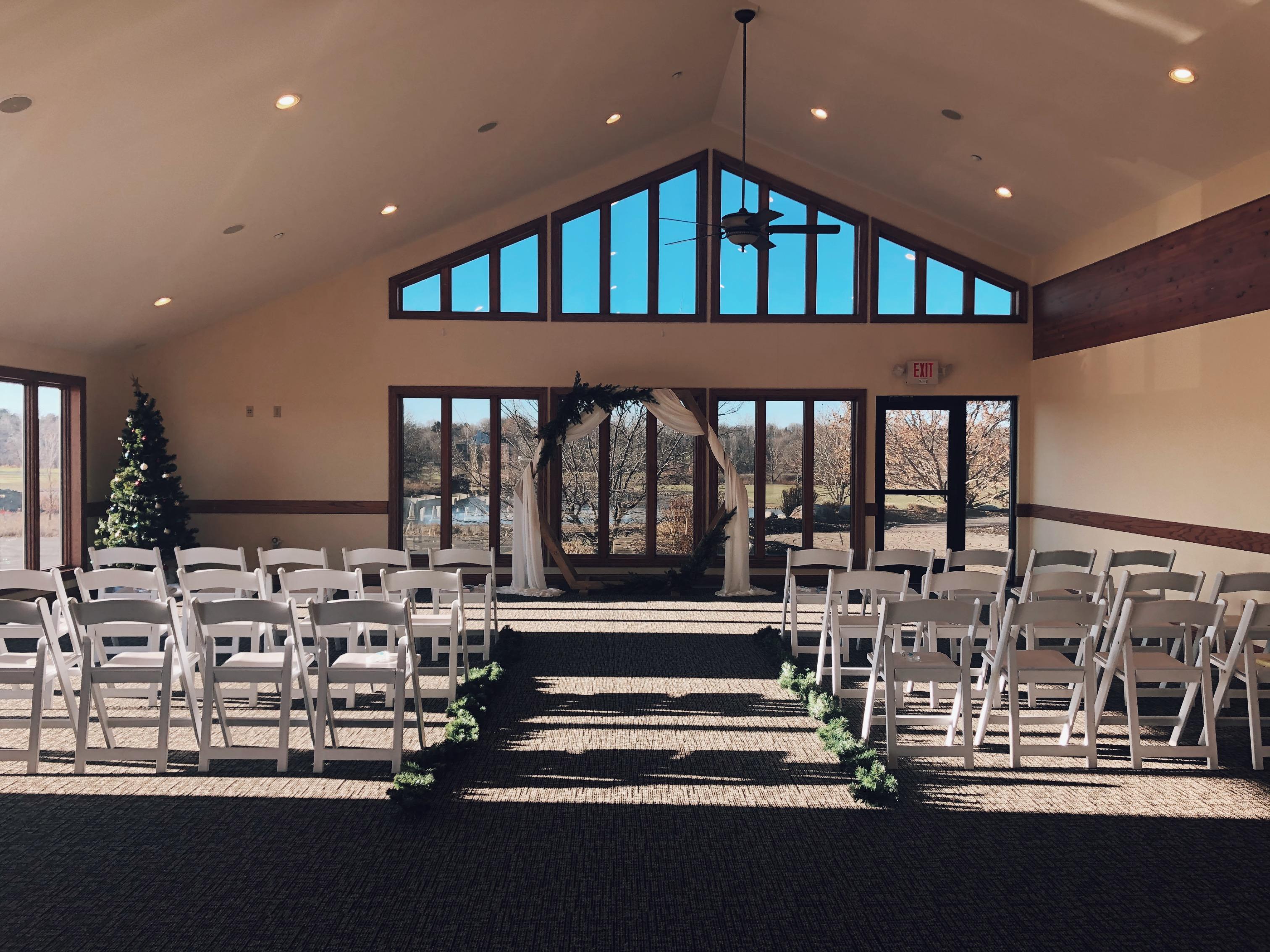 Oak Glen is a private and public golf course with a gorgeous wedding and event venue, located just 5 minutes from downtown Stillwater. Our packages include your ceremony and reception, on-site catering, tables, chiavari chairs, linens, flatware, charger plates, votives, and all day access to our getting ready suites! Oak Glen has two outdoor and one indoor ceremony locations as well as one beautiful reception space. The Willows ceremony site is located just off the first hole and features willow trees framing our beautiful fountain in the pond. The Prairie ceremony site is located closer to the clubhouse, making it more convenient for your guests to get to. All ceremonies include worry-free setup and tear down with white folding chairs, a hexagon shaped arch- that you can decorate, as well as back-up indoor ceremony site (depending on guest count.)