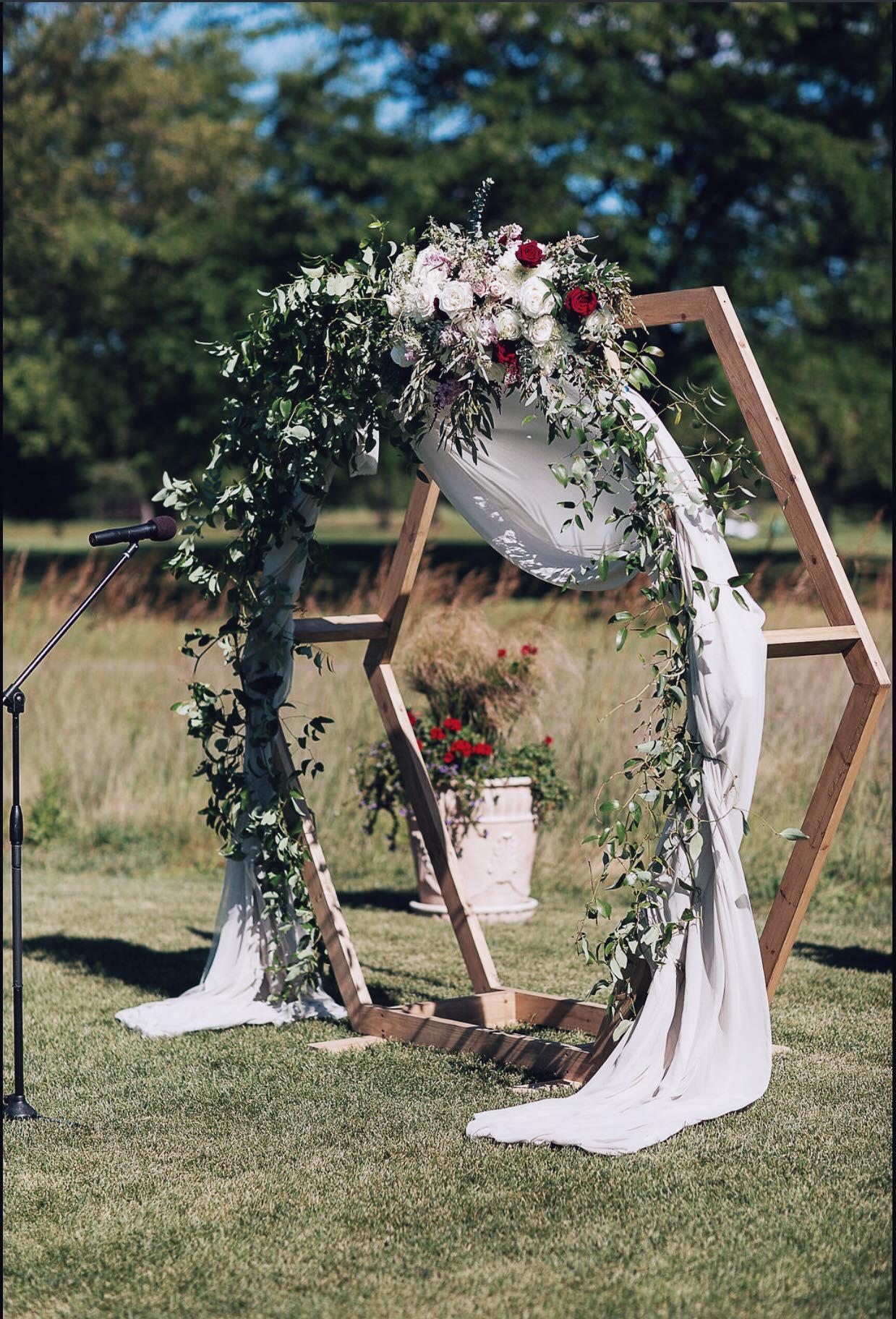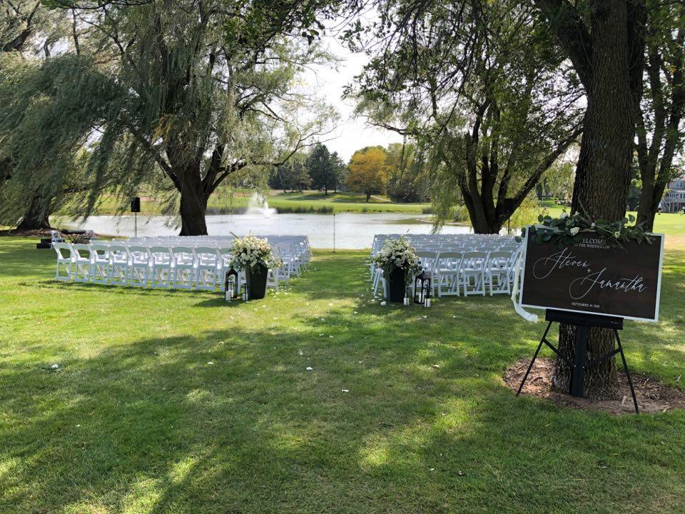 -White chairs -Hexagon Arch -Set up -Take Down -Golf cart assistance