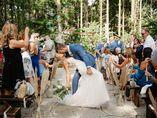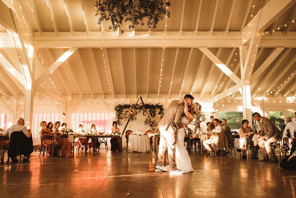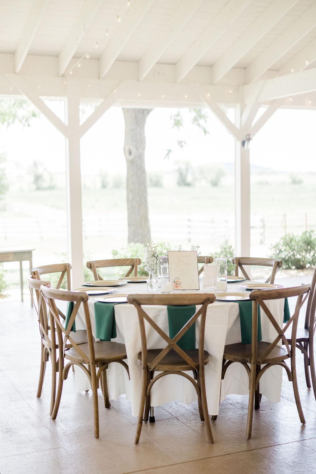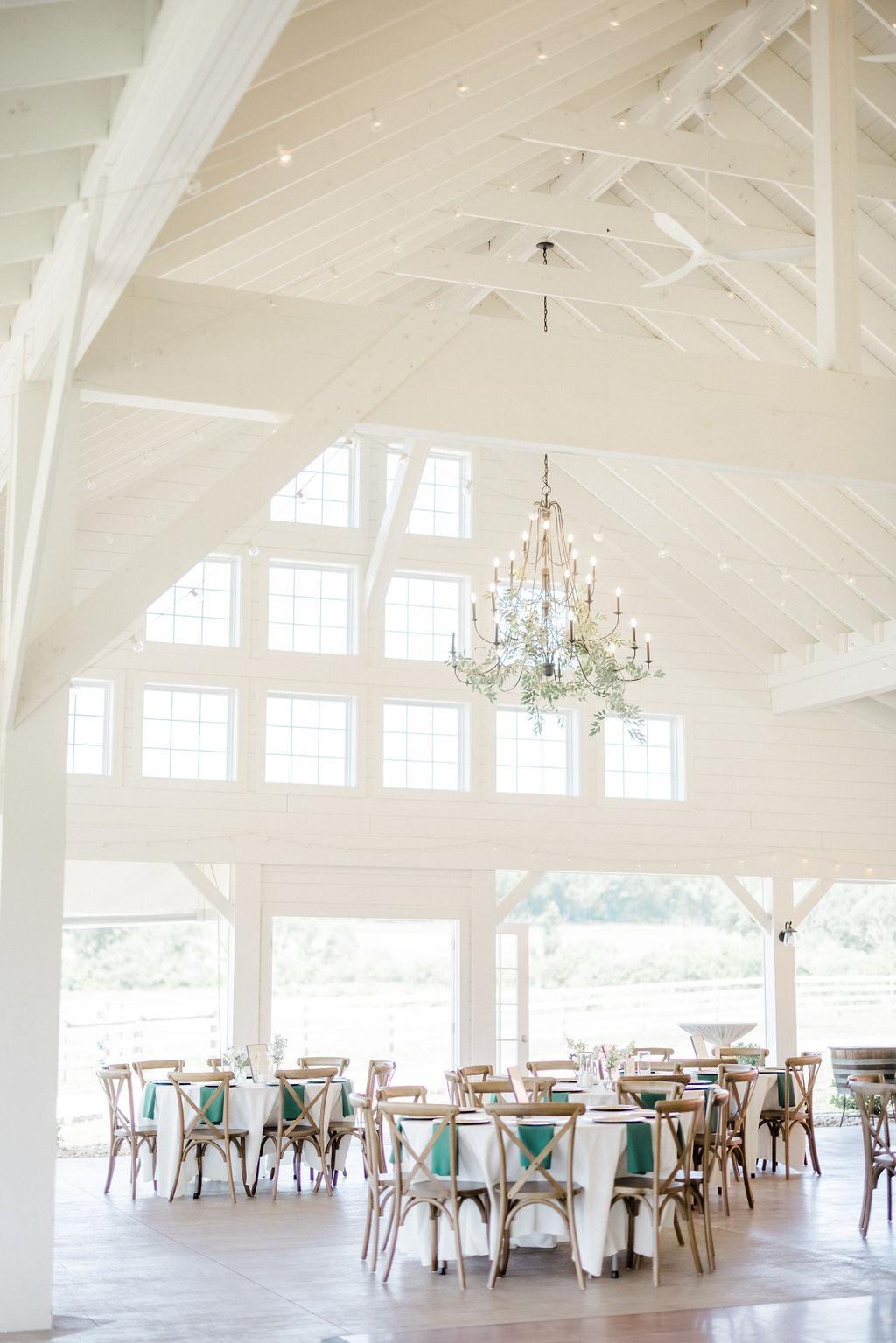 The Pavilionboasts 4800 square feet with windows to the east and west and a 25’ ceiling. The string lights, greenery and chandeliers complete the all-white, elegant barn-like setting that can seat groups up to 250. The window walls can be rolled up for 360 degree views, or closed to provide protection from wind and rain. We offer several different table and seating options with over 100 design elements to style your wedding, plus our team will fully set up and tear down all your decor!