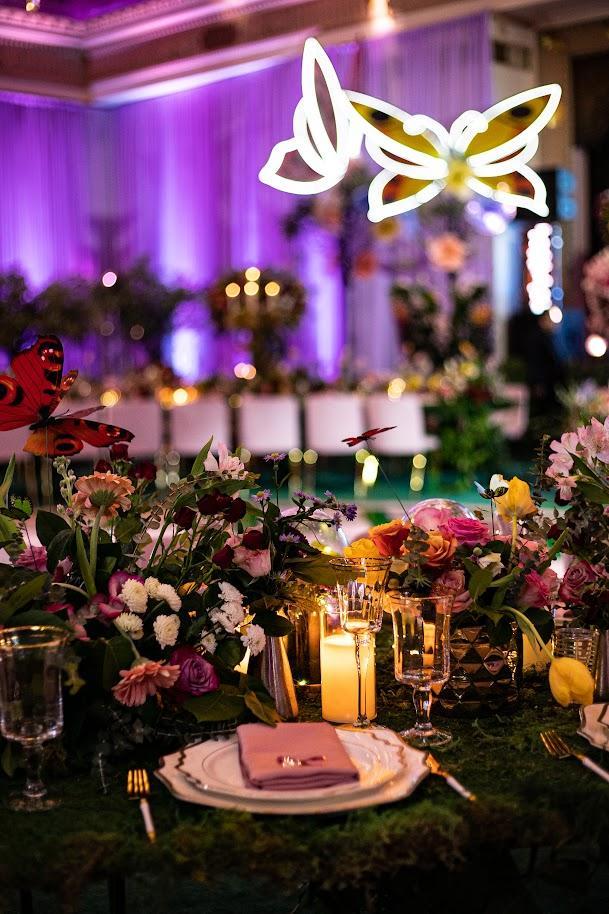 Over 10,000 sqft Ballroom with 3 story high, intricately carved ceilings and a full stage.