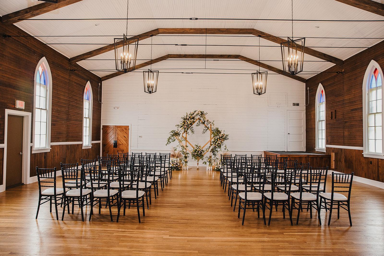 This is the perfect venue for the more intimate wedding. This historic white church features a full kitchen, cocktail hour space, a dressing room, and main ballroom.