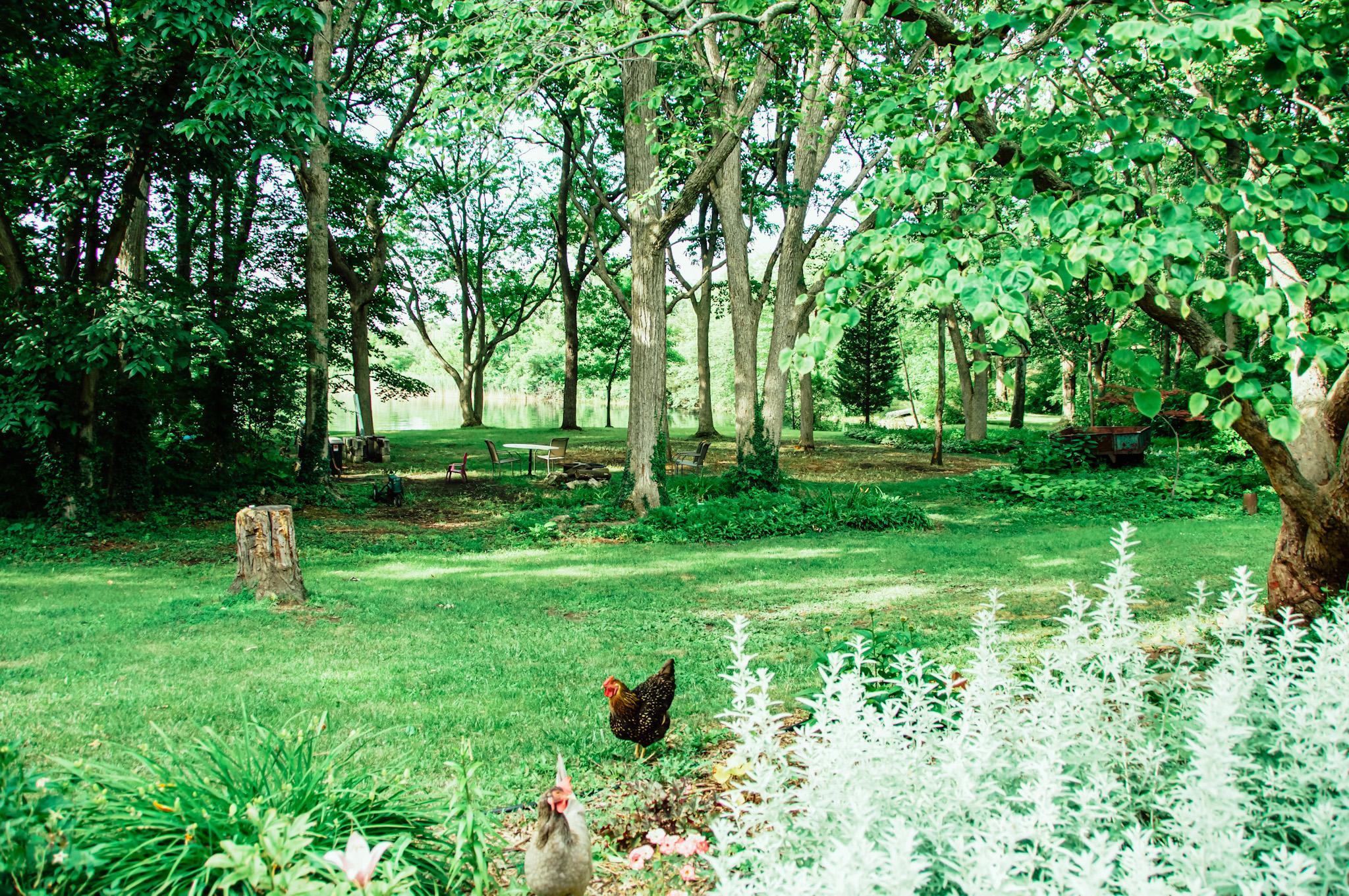 Surrounded by woods, water, and young fruit trees, its both serene and secluded. Our gnarly old cottonwood stands at the head of it all