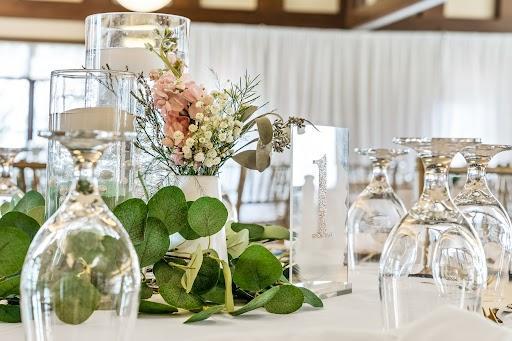 - Set up/tear down of tables based on layout requested - Set up/tear down of our standard padded green chairs (upgrades available) - Our house white or black table linens and napkins - Banquet Staff (if we cater your event) - On site for ceremony and reception events