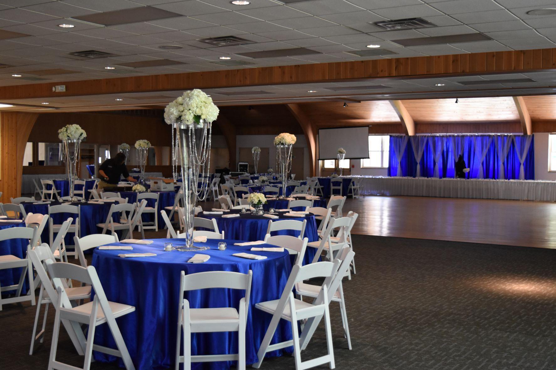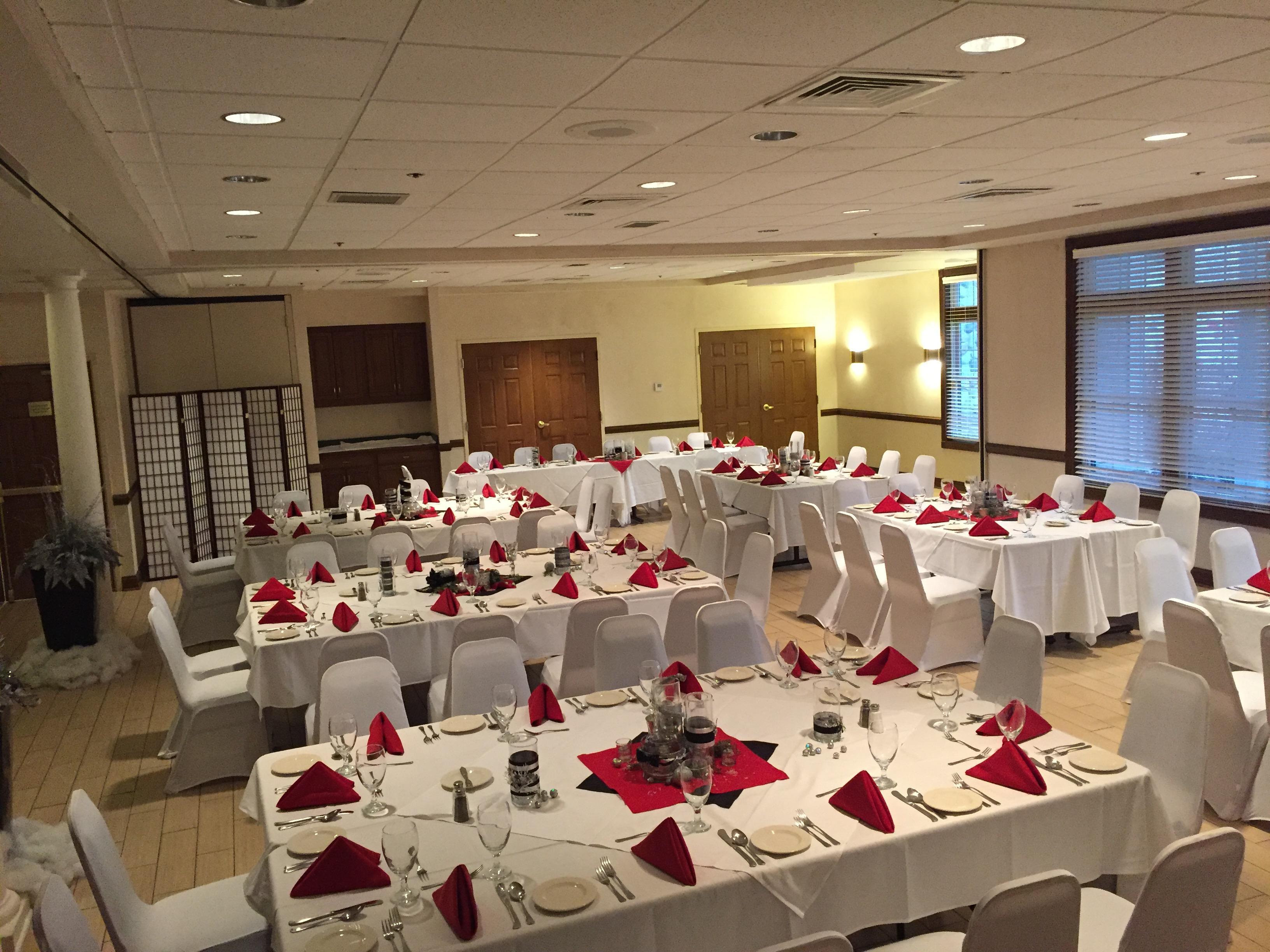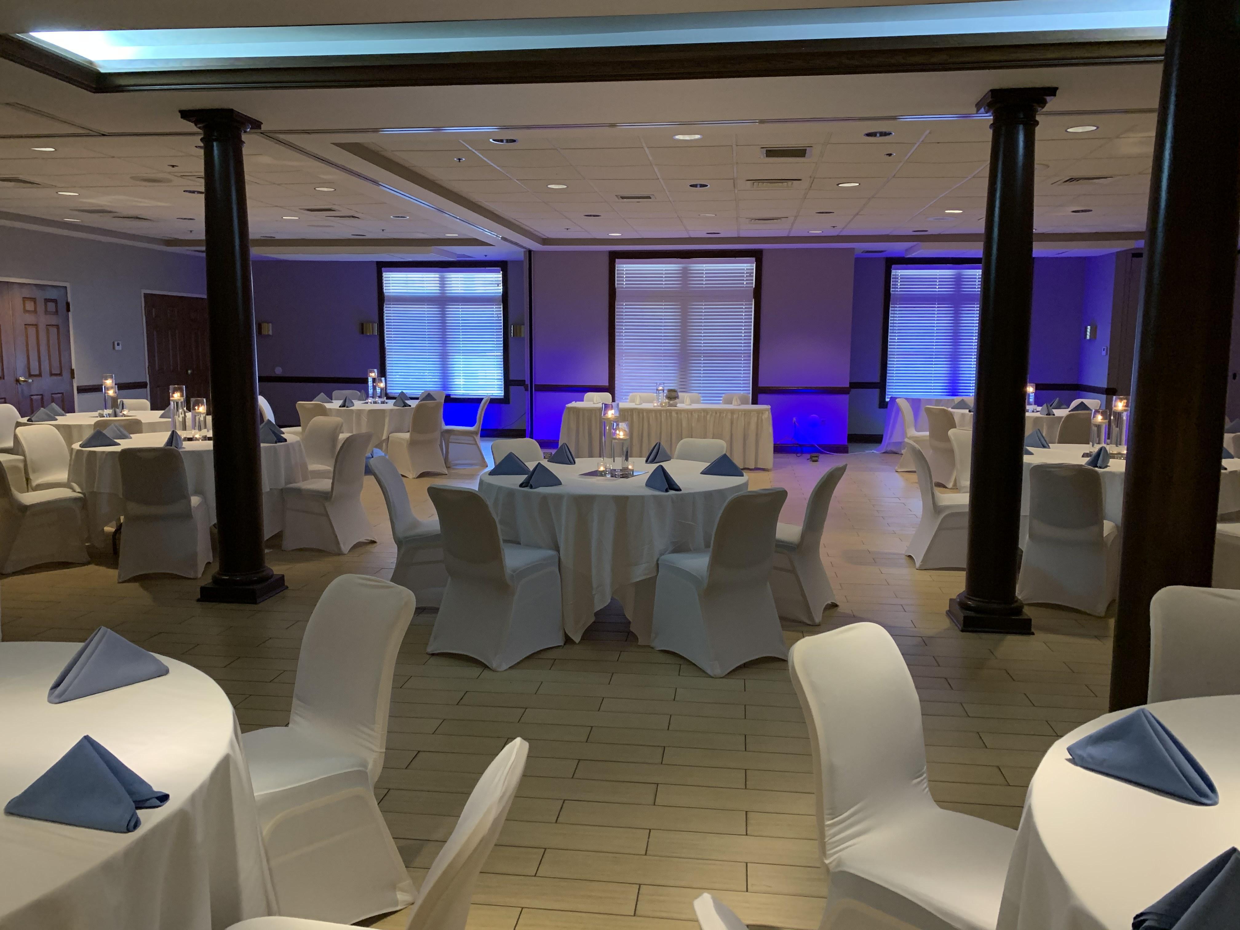 - Set up/tear down of tables based on layout requested - Set up/tear down of our standard white resin folding chairs (upgrades available) - Our house white or black table linens and napkins (upgrades available) - Banquet Staff (if we cater your event) - On site for ceremony and reception events.