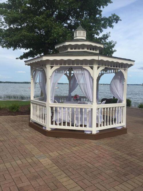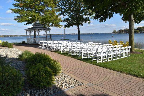 Our Lakeside Patio is one of the most popular locations on the property for micro wedding receptions with either the lawn for ceremony or our small gazebo. Enjoy the natural beauty of Lake Wawasee at your heels and create memories of a serene and romantic atmosphere with stunning views and lapping waves.