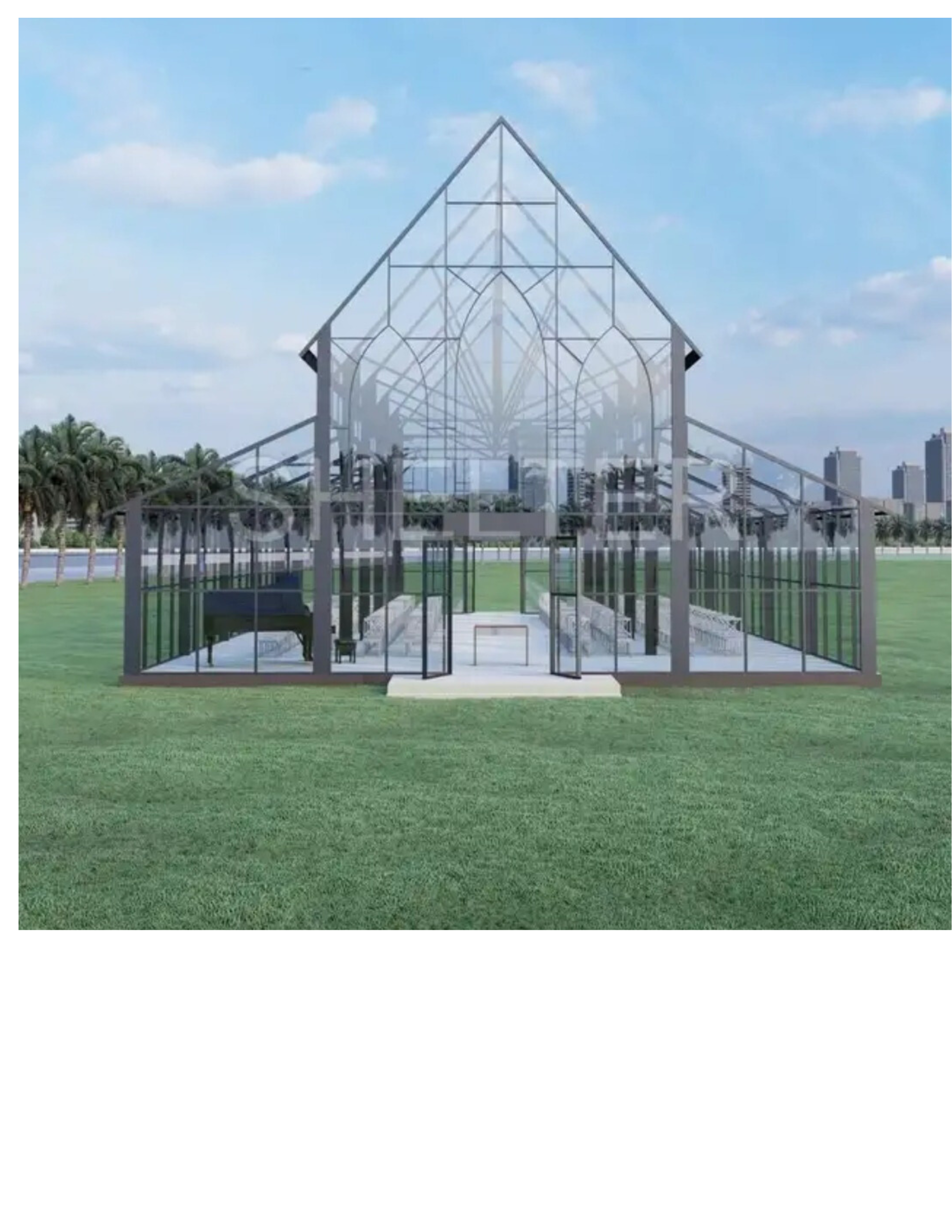The Atrium's distinctive design features cater to weddings, corporate functions, and exclusive VIP events. The elegant iron ornament and spacious interior provide a romantic and comfortable environment for couples and guests to create a dream wedding. This tent is also available for off-site event rentals.