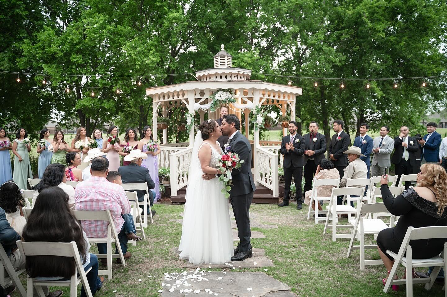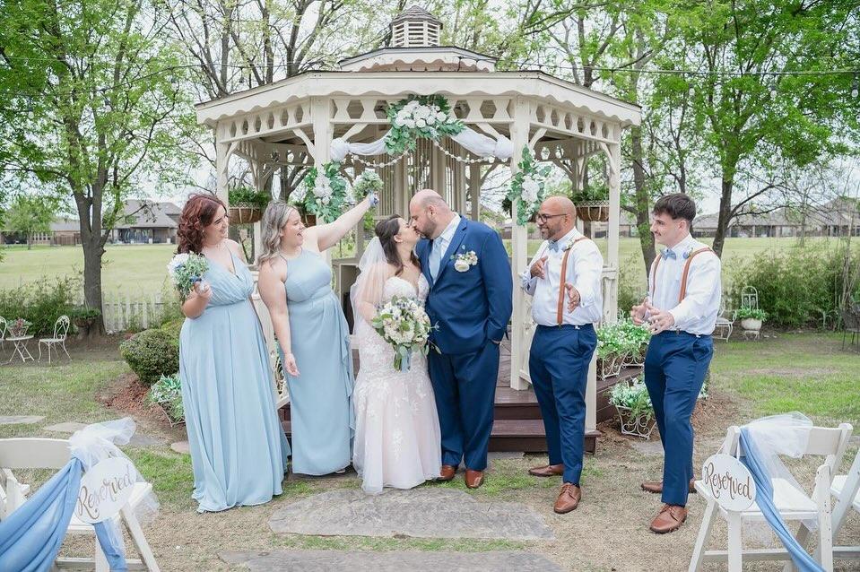 Occasions at Stone River is an all-inclusive wedding venue in the Dallas area, specializing in custom, affordable weddings. Dedicated to assisting couples and their families through every step, this venue ensures your wedding day is smooth and stress-free. With a variety of wedding themes available, including vintage, rustic, and classic, the options are endless. The venue features a beautiful chapel with crystal chandeliers and a winding staircase, accommodating up to 225 guests. For an outdoor ceremony, the gazebo offers a charming setting with a winding staircase from the bridal suite into the courtyard. The adjacent reception center is elegantly decorated with your choice of centerpieces and fine linens, with up-lighting in your selected color to create a beautiful ambiance.