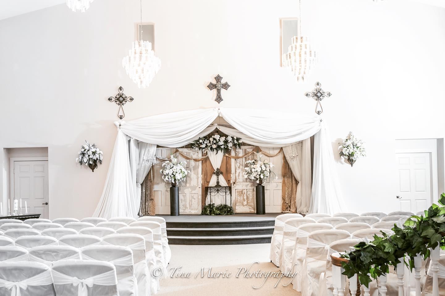 We have a lovely courtyard with a gazebo for an outdoor wedding, a beautifully decorated chapel with a winding staircase for indoors, and a reception center that will seat up to 200 guests. Whether your theme is vintage, rustic, or traditionally elegant, we have decorations that reflect your choice. It is our goal to give you a “stress-free,” dream wedding by offering a nice variety of packages. Our many options allow you to customize your package exactly as you would like and that best fits your budget.