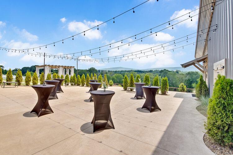 The side patio at Ocoee Crest offers a wonderful space for your guests to gather outside to enjoy the lovely view! This space features cafe lighting and is perfect for extending your reception outdoors!