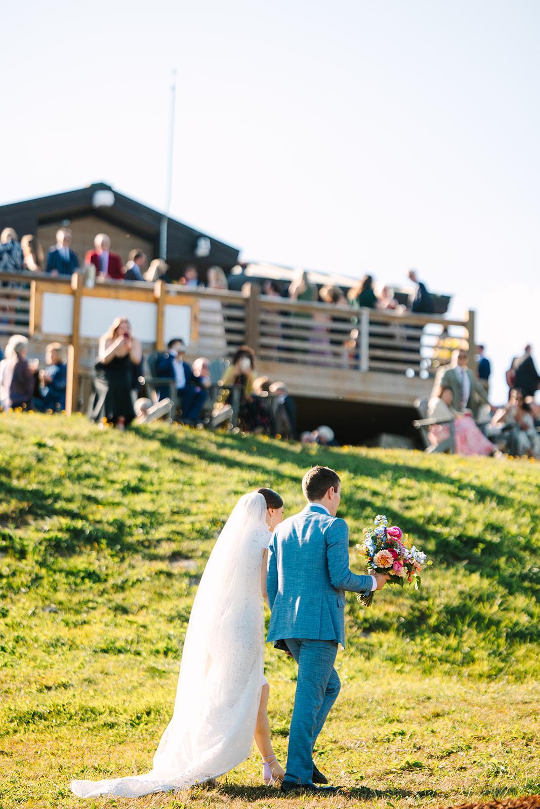 Event planning & coordination, discounted lodging rates, choice of outdoor ceremony site with rain backup, dedicated servers, bartenders, and event team, all dining essentials: tables, chairs, cutlery, glassware, and linens, dance Floor, curated list of our favorite vendors, VIP lift line access for summit ceremonies.