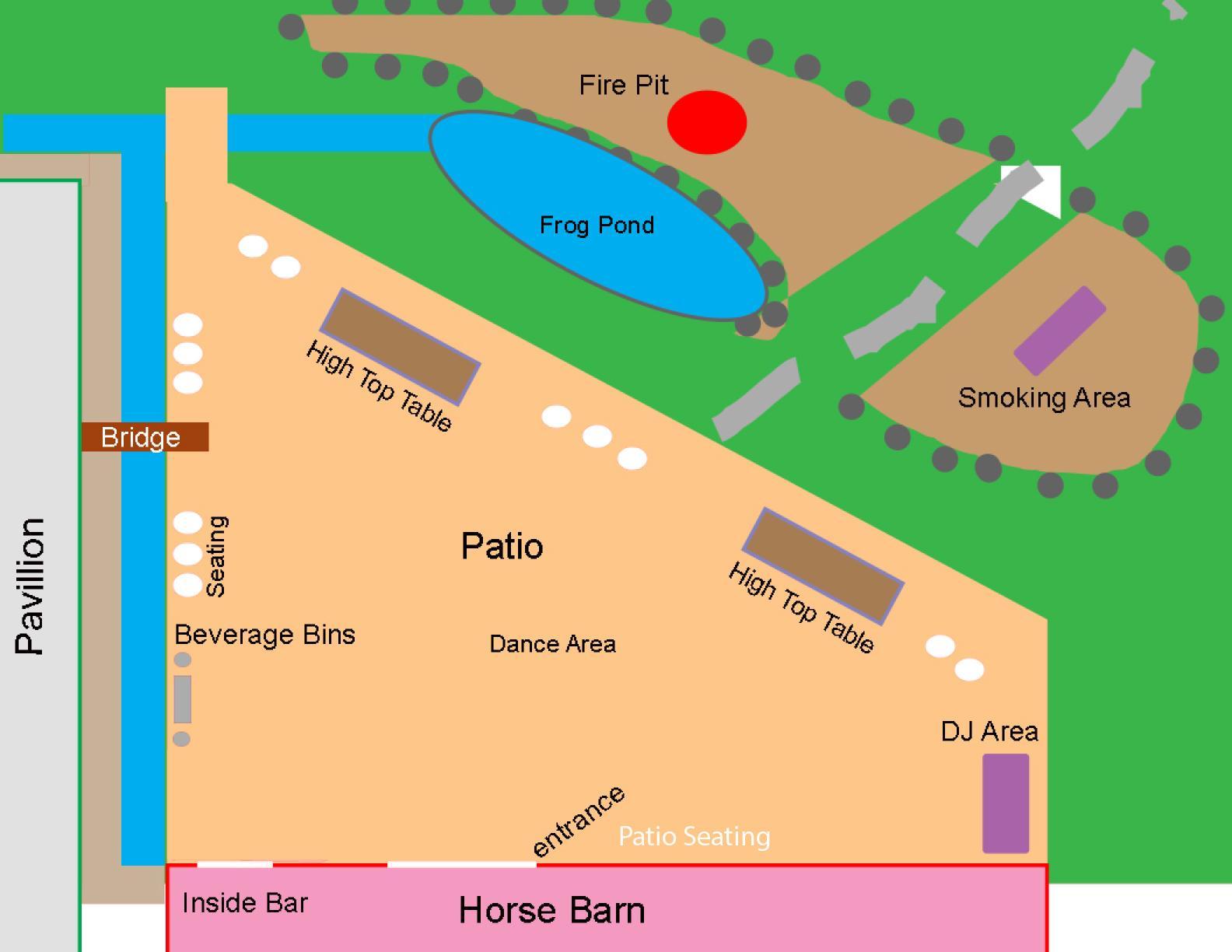 - outdoor seating - 5 high top tables - 12 additional chairs - DJ Booth - Picture Area