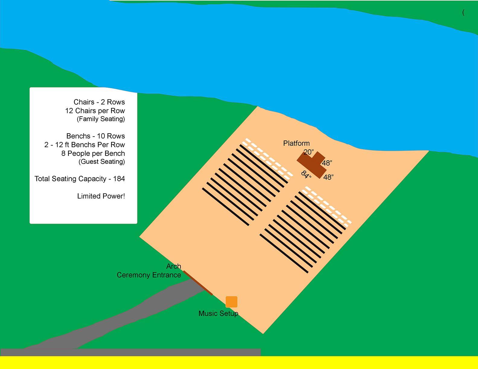 - Family Seating - Guest Bench Seating - Ceremony Platform - Whiskey Barrels - Phenomenal Views