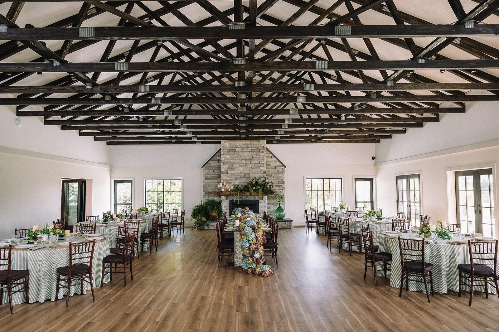 The Carriage House offers a modern farmhouse vibe with 4,400 sq. ft. of open event space, a blank canvas to let your imagination run wild. Overlooking the golf course and rolling hills, it creates a backdrop where every moment feels both elegant and naturally breathtaking. Recently renovated with modern technologies, it blends timeless charm with contemporary comfort for a seamless, unforgettable celebration.